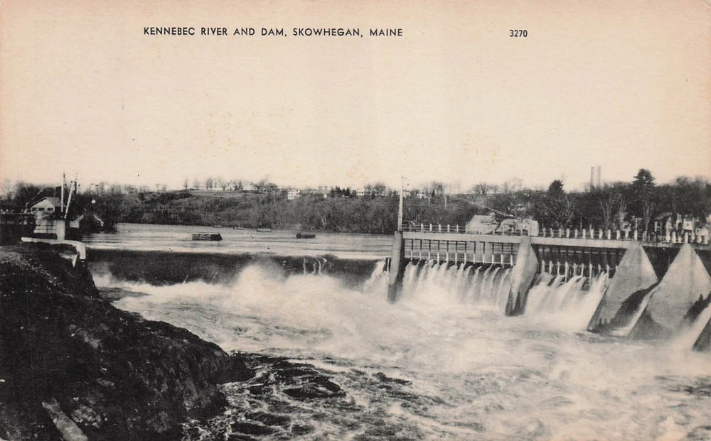 Kennebec River And Dam Scene Skowhegan Maine ME Vtg Postcard D65