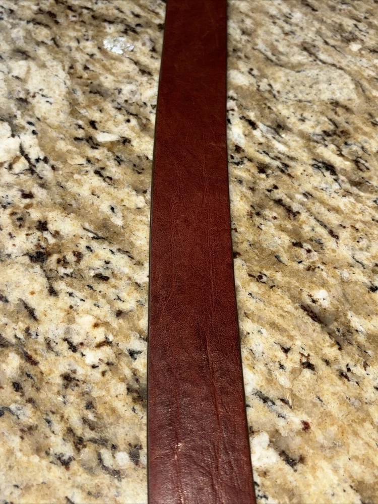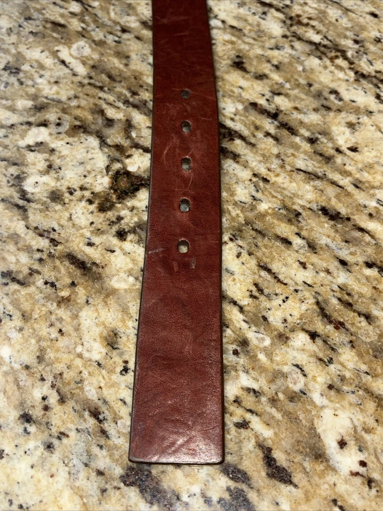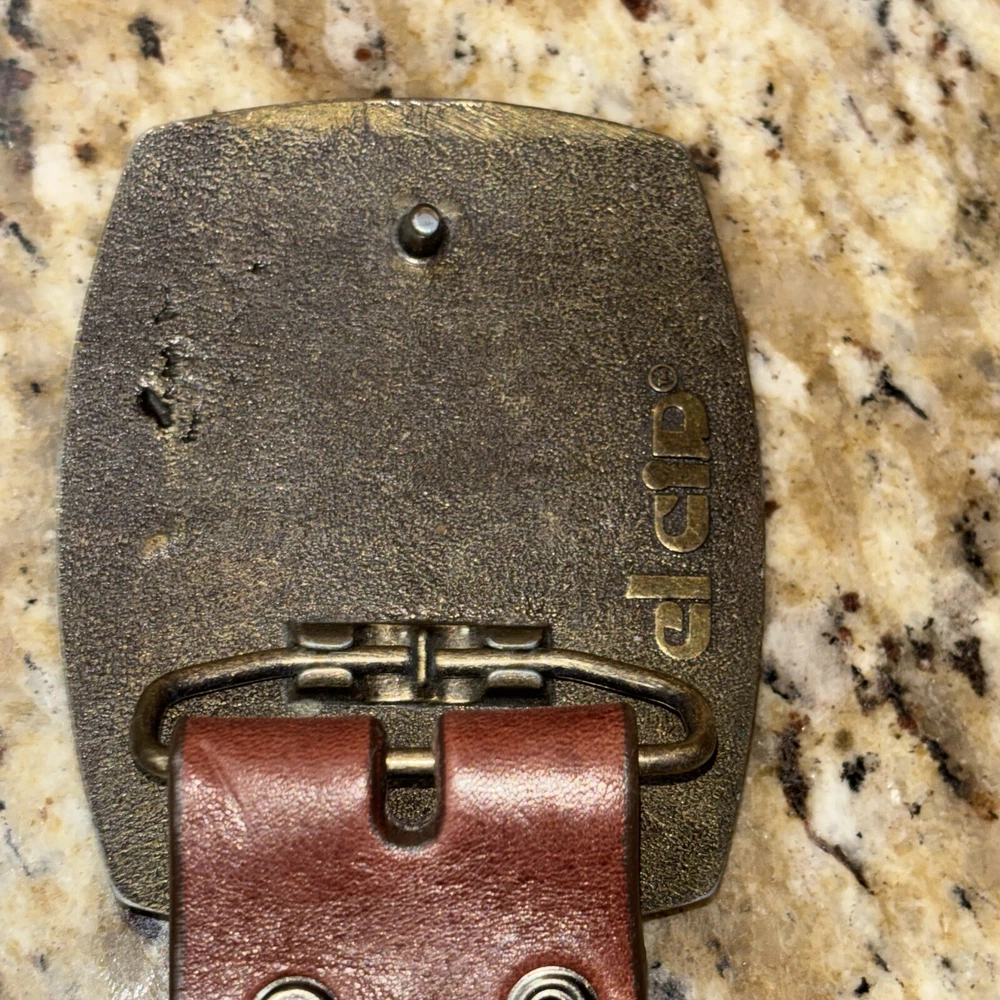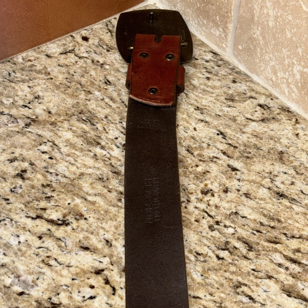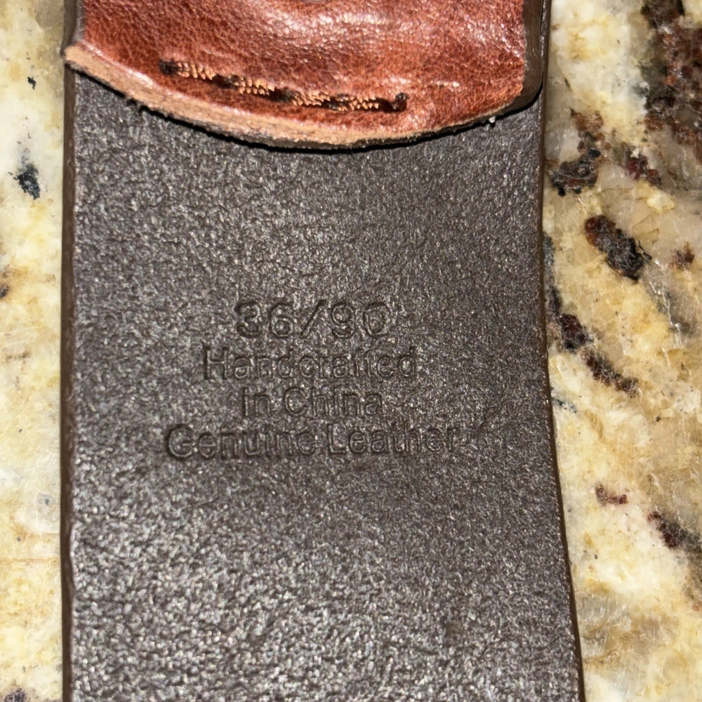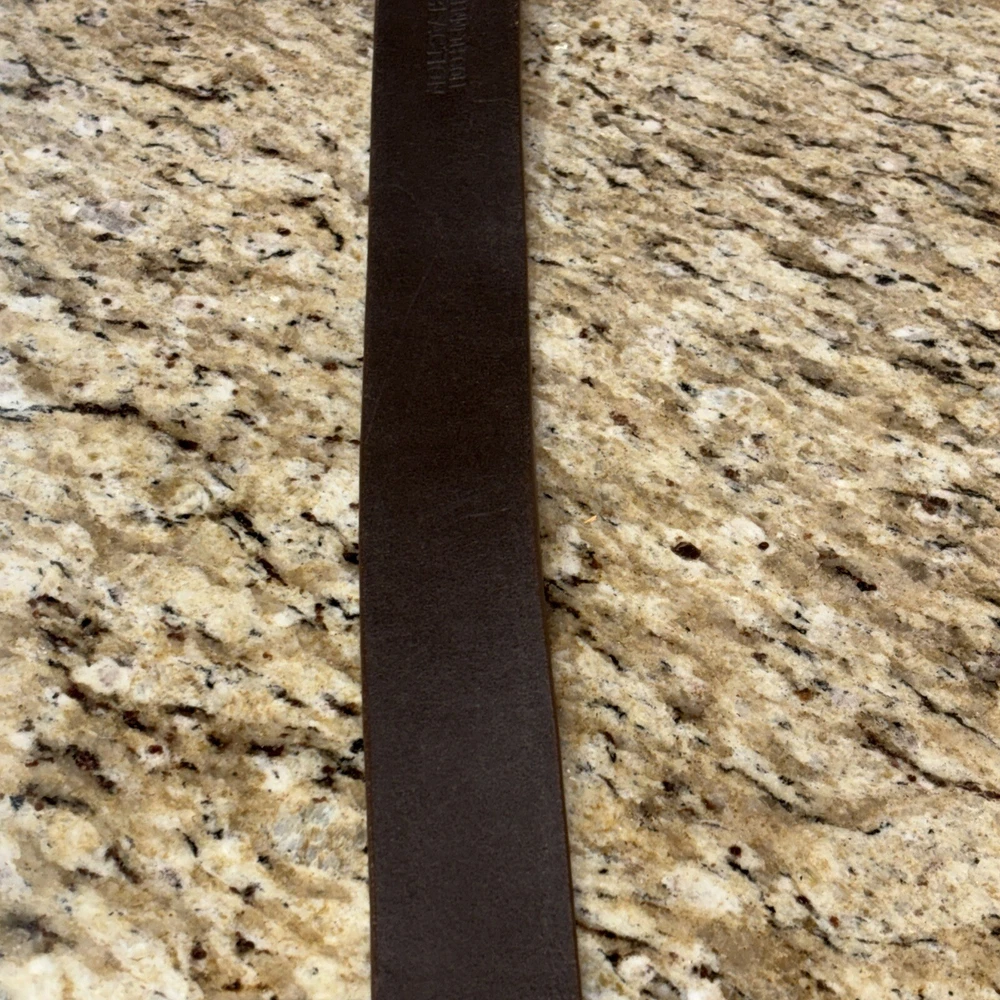 This is a unique Kenneth Cole Reaction leather belt featuring a rugged CAT Diesel Power buckle. Crafted from genuine leather, this belt is marked as a size 36/90 and handcrafted in China. The belt’s quality design and the bold CAT Diesel Power logo on the buckle make it a standout accessory, ideal for CAT enthusiasts or collectors. The leather shows light wear, adding vintage charm. Please refer to the photos for more details on the buckle and belt condition.