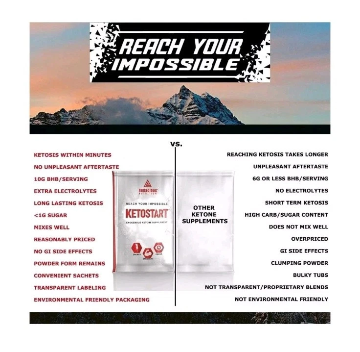 KetoStart | Exogenous Ketones Powder with Electrolytes | Caffeine Free | Trop 10 packet total