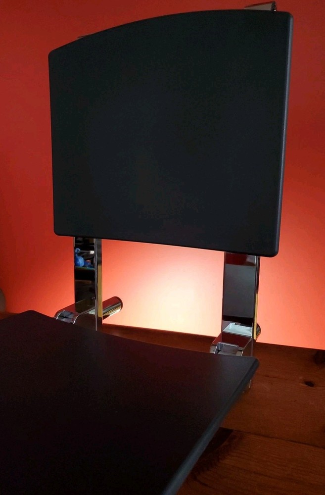 Keuco folding shower chair pre Owned But almost looks new hardly any signs of being used very shiny and clean these chairs are around $1000 new but here's a opportunity to get one at less than half of that, made in Germany very heavy construction maximum weight 285lbs thanks for Looking mounting instructions will be included with purchase Lot 118