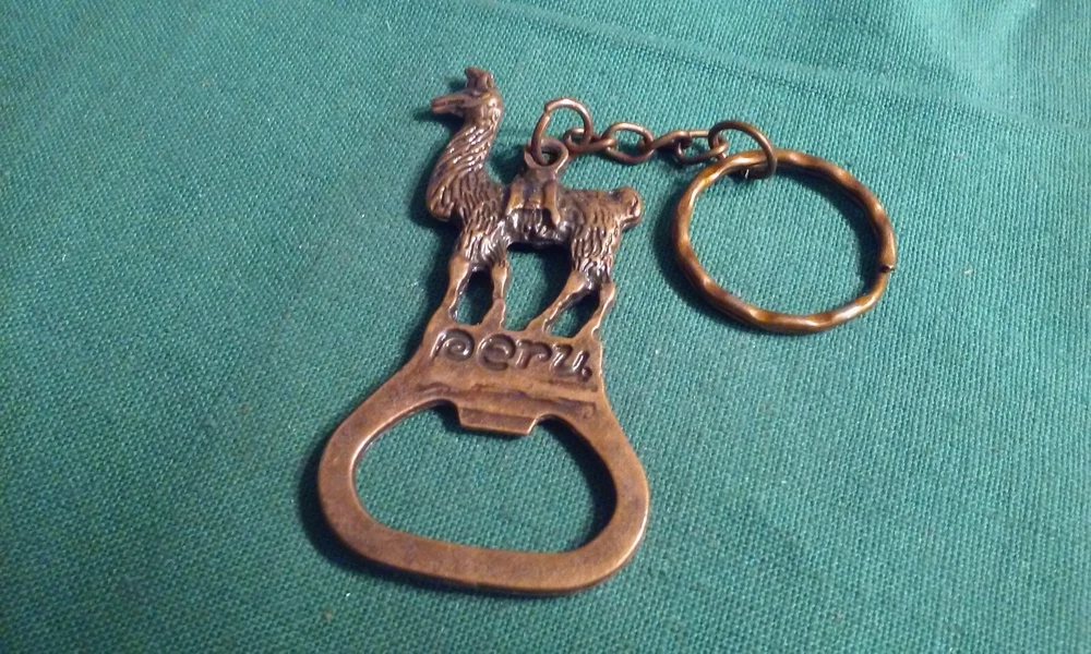Key Chain LLama Peru Bronze or Copper Tone Metal Souvenir Bottle Opener Unused