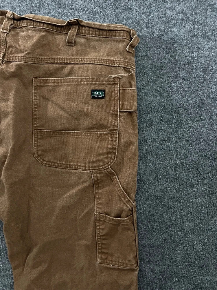 Key Work Pants Men Size 38x30 Brown Duck Carpenter Straight Workwear Canvas