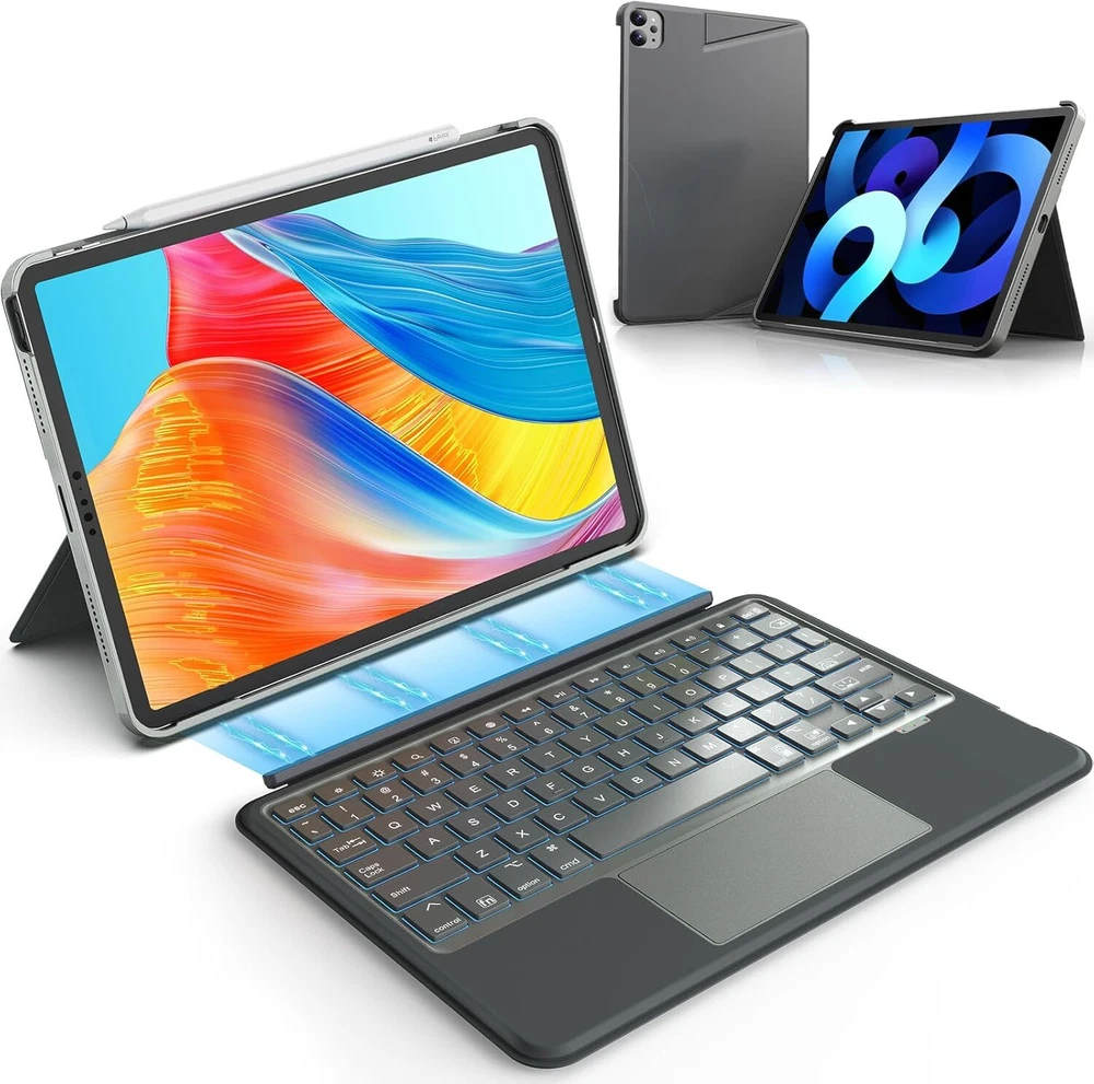Keyboard Case for iPad -Air 11- inch 2024 & Pro 11 grey Product Details Product Dimensions: 11 x 8 x 1 inches Item Weight: 1.94 pounds Manufacturer: PUTIANSHI NIUDABIWANG MAOYIYOUXIANGONGSI Batteries: 1 Lithium Ion batteries required. (included) Brand: CAPNEW Compatible Devices: iPad Air 5/4 10.9 inch (2022/2020), iPad Air 6 11 inch (2024), iPad Pro 11 4/3/2/1(2022-2018) Connectivity Technology: Bluetooth Keyboard Description: Multi Functional Recommended Uses For Product: Everyday Use Special Feature: Lightweight, Backlit, Foldable, Trackpad, Rechargeable Color: grey Number of Keys: 1 Style: Classic Product Dimensions: 11"L x 8"W x 1"H Compatibility: only compatible with iPad Air 11 inch(2024), iPad Air 6th Generation (2024), iPad Pro 11 inch (2022/2021/2020/2018), iPad Air 5th Generation (2022), and iPad Air 4th Generation (2020); models A2759, A2435, A2761, A2759, A2435, A2761, A2316, A2324, A2325, A2072, A2377, A2459, A2301, A2460, A2068, A2228, A2230, A2231, A1980, A2013, A1934, and A1979 Work from Anywhere: Elevate your iPad Pro 11 Inch Case experience with our precise, versatile keyboard. Effortlessly navigate work and play with a full-area trackpad, and have 7-color backlight with 3 adjustable levels of brightness. Size: 25*19.5*2 cm Five Placement Detachable Modes:The touch keyboard for iPad is magnetically connected, making it easy to detach. It can switch between five placement modes for work, study, watching movies, drawing, and reading Lightweight and Portable Design: Boasting a slim, lightweight profile, And with a touchpad function. the keyboard case edge is the ideal companion for on-the-go users who seek functionality without additional bulk Keyboard Case for ipad Air 6/5/4th: Bluetooth keyboard with a rechargeable battery providing over 60 hours of use and 100+ hours of standby time. Lightweight, the keyboard can be removed and used as an iPad protective case