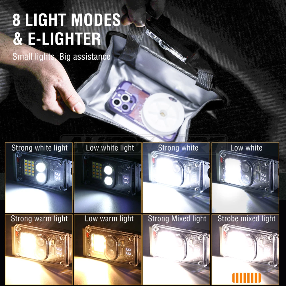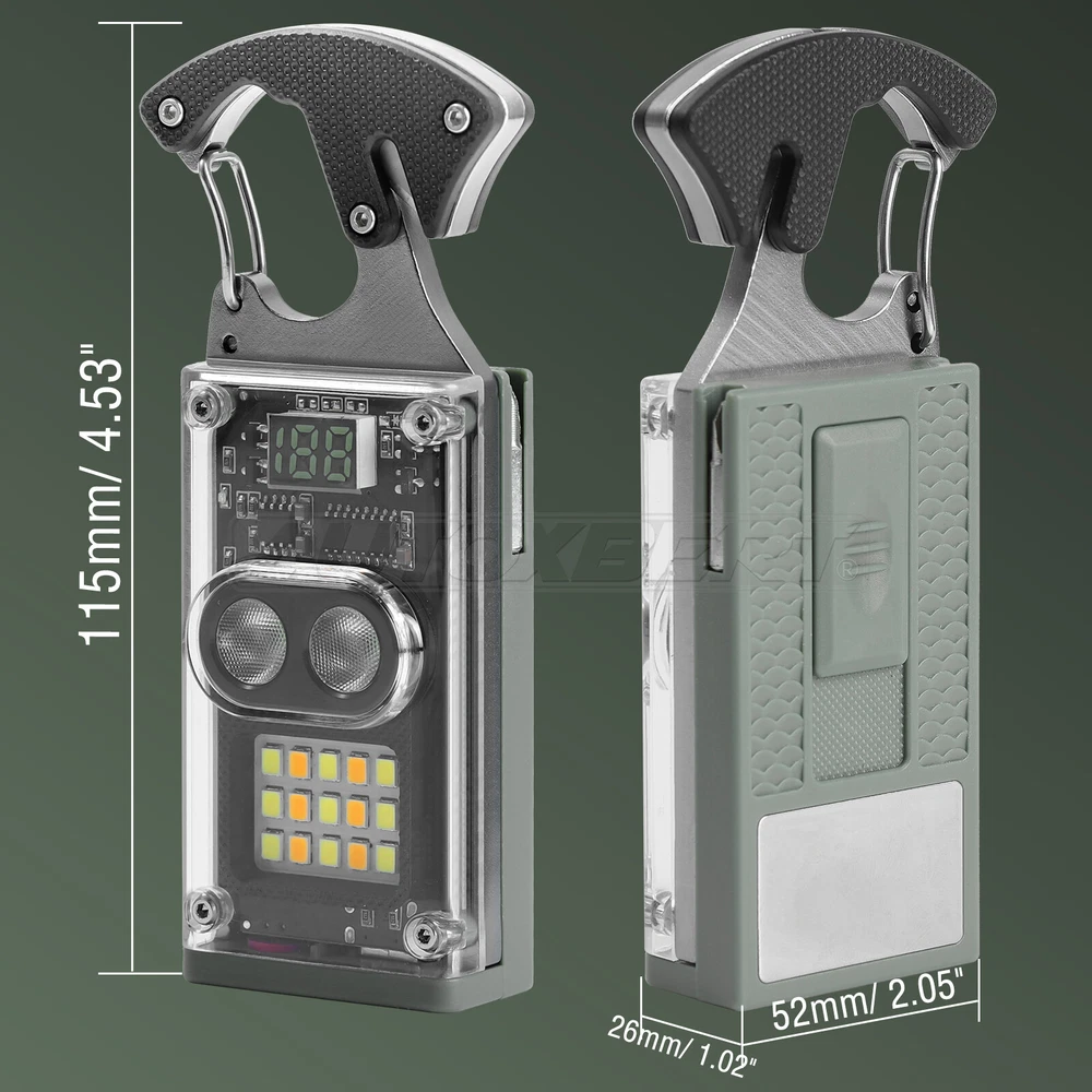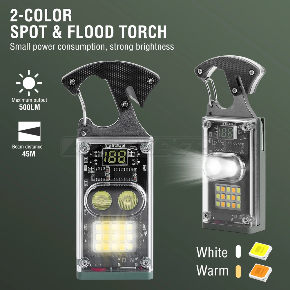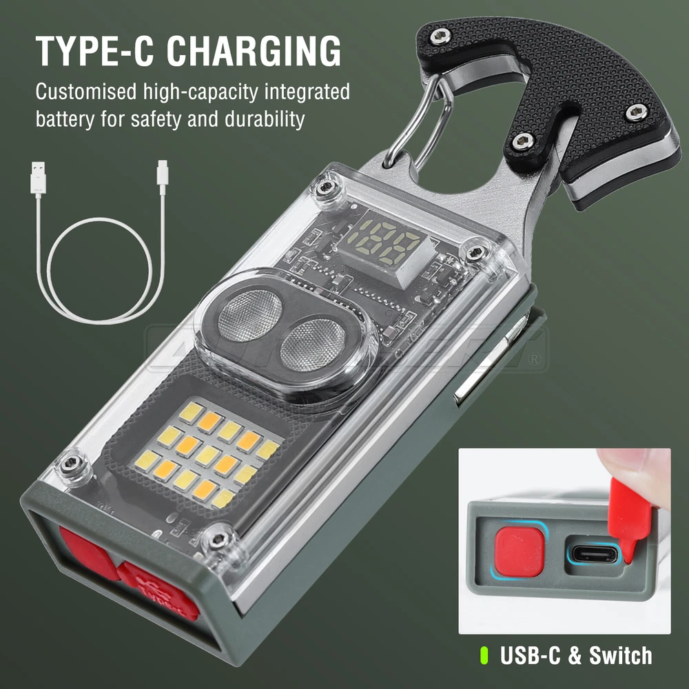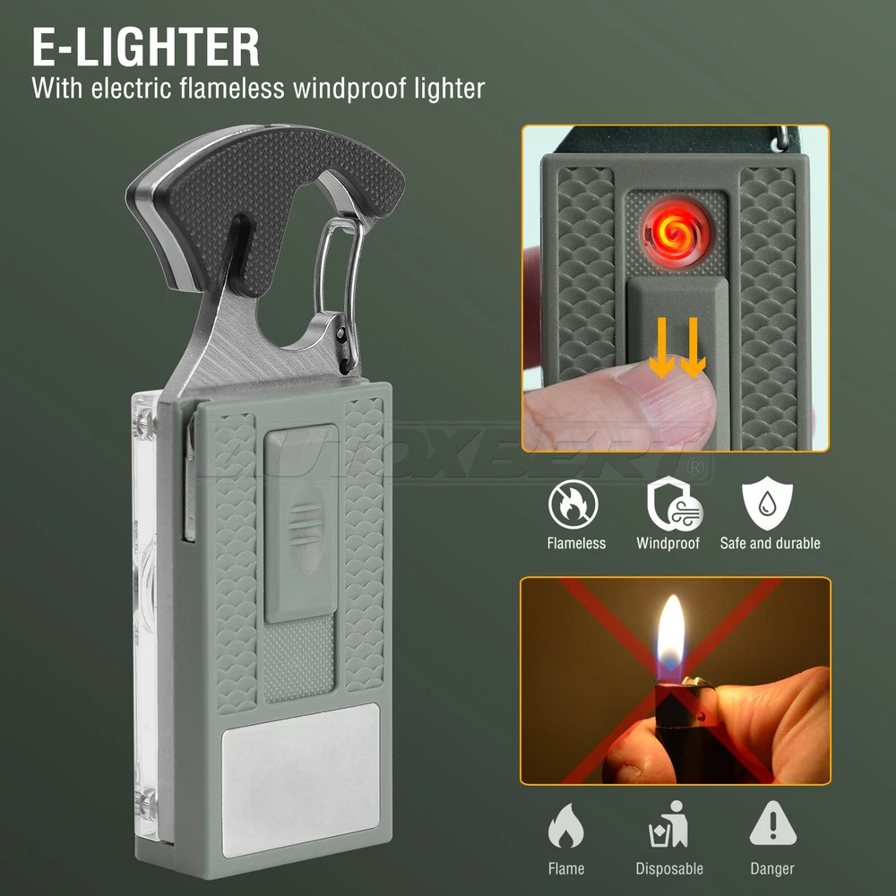 LED Portable Small Torch Rechargeable,8 Lighting Modes,Type-C USB Rechargeable Pocket Light,Mini Flashlight with Spring-loaded Buckle, electric-lighter A Multi-Light Modes Torch: The mini keychain flashlight boasts eight versatile modes, tailored to your specific needs. Switch between white light, a subdued white glow, warm illumination, a muted warm hue, mixed lighting, and even mixed flashing to suit your preference. Capable of delivering an impressive 500 lumens of light, this keychain light offers an extensive range of brightness, ensuring ample illumination for your path and dark environments. A Cool E-Lighter: The back of the mini flashlight houses a switch that requires only a gentle pull with your thumb to activate the electric heating wire lighter after a brief delay. Unlike traditional lighters, this model offers superior wind resistance, increased safety without an open flame, and is also environmentally friendly. Additionally, adding to its intriguing nature, the digital display on the front increments by 1 each time the lighter is ignited. Furthermore, upon activation, six small LEDs illuminate in three vibrant colors - blue, red, and green - creating a striking visual effect in the night. A Portable Keyring & Tools: Equipped with a spring clip, the light can be effortlessly attached to a keychain or backpack, making it extremely portable. Additionally, its lightweight design of less than 100g further enhances its portability. What's more, the light features two tiny screwdrivers neatly tucked away in a side recess. These screwdrivers can be easily detached and magnetically attached to the top of the light for convenient use. Specifications: Material: ABS Plastic,Magnets,metal,COB LED Capacity : Built-in 550 mAh rechargeable capacity Charging Port: Type-C USB Charging Time: 2.5 Hours Working Time: Strong light 4-5 hour, low light 6-8 hour Light source: COB flood light panel and spot flashlight on the top Light Color: white light,warm white, mixed light