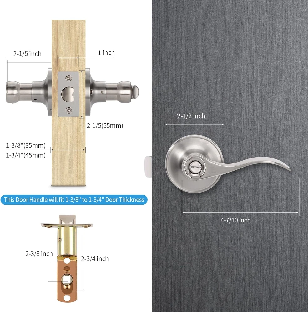 Store New Arrivals Add to Favorite View Feedback Contact Keyless Privacy Door Handle Levers Interior Door Knob Bedroom Bathroom Door Locks Satin Nickel Finish Contemporary Wave Style Durable Door Hardware, Universal Handing, Pack of 2 Description Item model number 2-3824BKSN Pattern Wave Lever-Drop Style Switch Style Screw-in Batteries Included? No Shape Drop Finish Type Satin Nickel Batteries Required? No Finish Satin Nickel Special Feature Keyless Features Material Zinc Style Contemporary Handle Type Knob, Lever Package Type Standard Packaging Metal Type Stainless Steel Specific Uses For Product Commercial/Residential Included Components Installation instructions, door levers, strike plate and screws Item Package Quantity 2 Item Weight 3.47 pounds Size Privacy Door Handles for Bed/Bathroom Special Features Keyless Features Exterior Finish Stainless Steel, Zinc Hand Orientation universal Part Number 2-3824BKSN Color 2 Pack Package Dimensions 7.64 x 6.46 x 6.42 inches Handle Material Zinc, Stainless Steel Number Of Pieces 6 FULLY REVERSIBLE DOOR PRIVACY SET - Suit for interior doors where a privacy locking function is required, such as a bedroom or bathroom. Be locked with turn buttons without key; When locked inside, the door could be opened outside with coin. Designed for domestic/office installation, fits on left/right handled doors. STANDARD SIZE - Adjustable Backset - 2-3/8 inch or 2-3/4 inch (60mm or 70mm); Fits doors thicknes:1-3/8 inch to 1-3/4 inch (35mm to 45mm). SIMPLE & EASY INSTALLATION - Package come with all accessories, including a detailed instruction guide. Easy and simple fitting helping to save your time and gives a safer and more secure installation. STURDY & DURABLE CONSTRUCTION - We use only the finest zinc alloy and stainless steel, immense durability. Meets ANSI grade 3 standards and tested for over 200,000 use cycles, superior machining and hand polishing techniques present a flawless finish with hidden screws to maintain the high end contemporary style of this lever. Welcome to E-Home Hardware Any question or problem about the items, please don't hesitate to and we give you a reasonable solution in 24 hours. We will do the best for your satisfaction. Interior door handles with PRIVACY LOCK - PRIVACY function for use on interior doors where a privacy locking functions are required such as a bedroom or bathroom. Door handle set is crafted of solid zinc alloy in satin nickel finish provides superior durability and high performance. Features: ●Finish: Satin Nickel/Brushed Nickel ●Certification: ANSI Grade 3 ● For domestic home and office use ● Fits both left handed and left handed doors ● Standard Size - Adjustable Backset - 2-3/8 inch or 2-3/4 inch (60mm or 70mm); Fits doors thicknes - 1-3/8 inch to 1-3/4 inch (35mm to 45mm). ● Bulk order contract packs - buy more, save more ● Simple and easy to install- All you need is only a Phillips screwdriver. What's in box: ● Lever Set Body x 1 ● Latch x 1 ● Strike Plate x 1 ● Screws for Latch Plate ● Screws for Strike Plate ● Installation Guide x 1 (● Keys x 3) Brings Functionality to Your Home: While offering the trusted, enduring qualities , this collection features high style for the discriminating consumer. ABOUT US We offer the best prices around on high quality products. Our E-store includes media such as books, movies, music and games while offering electronics, toys, sporting apparel, clothing, tools, general home, garden items and more. SHIPPING We are always working hard to ensure your package arrives as soon as possible. Please understand that some factors like weather, high postal traffic, and the performance of shipping companies are outside of our control. We offer free shipping to the lower 48 states and ship within 2 business days of payment, usually sooner. We do not accept P.O. Boxes. Please provide a physical address. For shipping outside of the continental USA, we only use eBay's Global Shipping Program.The item is shipped to KY and then sent to the rest of the world. International customers are responsible for all duties and taxes. Continue to check out in order to calculate costs for shipping the item to your country. Messages regarding eBay's Global Shipping Program MUST be directed at eBay EXCLUSIVELY. RETURNS We offer a 30-Day Return Policy on items which you are not completely satisfied with. You have the option for a full-refund or an exchange of the item. No returns are available on items shipped outside of the USA. PAYMENT We accept PayPal. CONTACT US This page content is yet to come Please ad us to your favorite seller and visit again later Thank You CUSTOMER SATISFACTION We try our very best to make sure every customer is completely satisfied. If there's a problem, message us! We're happy to help. WE ACCEPT Copyright © 2021 AutoDS. | All Rights Reserved