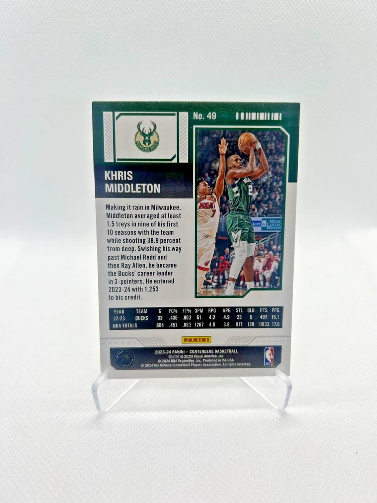 Khris Middleton - 2023-24 Panini Contenders Game Ticket Green Foil #49 - Milwaukee Bucks