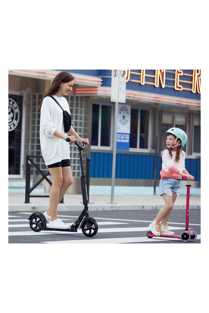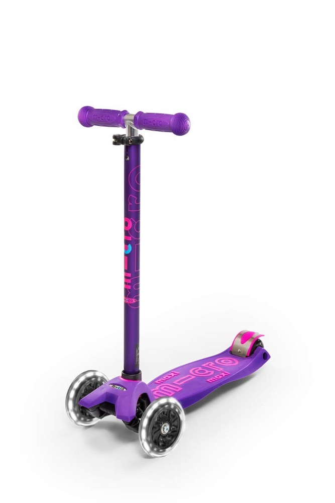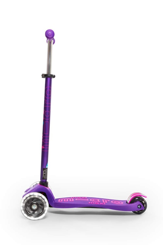 The innovative brand is known by families for its smooth-gliding, long-lasting scooters for children and adults. 's 3-wheeled Maxi Deluxe LED scooter, with a lean-to-steer design, offers a stable ride that supports children as they curve and carve the sidewalk.. Features two front LED motion-activated light-up wheels. (No batteries required!) Incredibly strong (holds up to 110lbs) yet extremely lightweight, perfect for elementary-children; plus an adjustable T-bar (handlebar) grows with children from age 5 up to age 12. Offering a gold standard 2-year manufacturer's warranty and award-winning customer service, combined with replaceable parts, your Maxi Deluxe scooter is sure to last, virtually forever! No assembly required: simply insert T-bar (handlebar) into the deck and ride! Supplied hex wrench ensures parents are able to adjust the T-bar to desired height and tighten before riding.