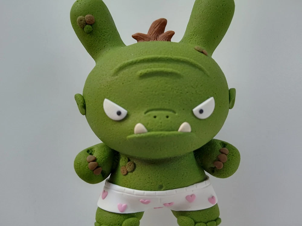 Orc Dunny Mint condition . One off, hand made custom piece by pro design team: The Bots (Jenn & Tony). No articulation. Approx 3-inches tall. Polymer clay used to customize - 2013. Produced using a vinyl dunny by Kidrobot.