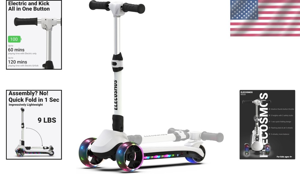 Light Up 3-Wheel Electric Scooter for Kids - Adjustable Height, Easy Ride ‹ › ‹ › ‹ › ‹ › ‹ › ‹ › ‹ › ‹ › Light Up 3-Wheel Electric Scooter for Kids Experience a delightful blend of fun and safety with our Light Up 3-Wheel Electric Scooter, designed specifically for kids. This innovative ride is packed with features that ensure hours of joy while promoting balance and coordination. Features: Intuitive Riding: Stand on the sturdy deck, press the thumb button, kick off, and feel the breeze as you glide up to a safe 5 MPH top speed. Lean to steer seamlessly and use the rear foot brake for effortless stopping. No Assembly Required: Designed for ease of use, simply unbox, charge, unfold, and ride. The rustproof aluminum alloy stem offers 3 adjustable heights (26"/28"/30"), suitable for children aged 4 and above. Balance & Coordination: The 3-wheel design provides enhanced stability, allowing for an easier ride without the need for perfect balance. Children can simply lean to turn and enjoy a more controlled experience. Light Up Deck & Wheels: Adorned with flashing LED lights for visibility and excitement. The extra-wide, anti-slip luminous deck supports up to 130lbs, while reinforced PU wheels provide shock absorption for a smooth ride. Benefits: Easy and intuitive for kids to use, promoting confidence. Encourages physical activity and enhances coordination skills. Lightweight at just 9 lbs, making it easy for kids to handle. Durable design ensures long-lasting fun and safety. Perfect gift for birthdays and holidays, providing endless family joy. Why Choose Our Light Up 3-Wheel Electric Scooter? If you are seeking an exhilarating and safe riding experience for your child, this electric scooter is your answer. With its thoughtful design, adjustable heights, no-fuss assembly, and safety features, your child will enjoy every trip. The light-up wheels not only add to the scooter's aesthetics but ensure visibility, making it perfect for playing outdoors at dusk. Join in on the adventure – order the Light Up 3-Wheel Electric Scooter today and watch your child's excitement soar! Shipping Free & Fast Shipping - We offer free shipping to most of the USA with a normal delivery time of 3-7 days. However, due to the current situation, additional delivery time (up to 3 weeks) may be required for some items. Alternative Carriers - We may use alternative carriers (e.g. USPS, FedEx, UPS, etc.) to ensure your package arrives safely and on time. Due to the use of multiple carriers, we are unable to provide a tracking number automatically. Handling Time - Orders are processed and shipped within 1-2 business days of receiving cleared payment. Shipping Restrictions - Shipping to Alaska, Hawaii, Puerto Rico, Guam, and other US territories may incur shipping charges or delivery restrictions. Please contact us before ordering, or your order can be refunded/cancelled. State Restrictions - There may be restrictions based on your state of purchase. For example, certain items may not be shipped to California due to state regulations. Contact for Tracking Updates - If you require tracking updates or have any concerns about the delivery of your order, please feel free to contact us, and we will be happy to assist you. Return Please see our eBay Return Policy. Thank you. Payment We accept all major credit cards, PayPal, and Apple Pay for your convenience. Your payment information is secure and encrypted to ensure a safe and seamless transaction. Please complete your payment within 3 days of purchase to avoid any delays in shipping. Feedback Your feedback is extremely important to us. We strive to provide the best products and customer service possible. If you are satisfied with your purchase, please take a moment to leave us a positive review. If you have any concerns or issues with your order, please contact us before leaving negative feedback. We are committed to resolving any problems and ensuring your satisfaction. Contact Us If you have any questions or concerns, please feel free to reach out to our customer support team. You can contact us through the eBay messaging system. We are available Monday to Friday, 9:00 am to 5:00 pm EST, and we will do our best to respond to your inquiry within 24 hours. Thank you for supporting our small family business! UPC: Not Set MPN: Not Set Unit Quantity: 9 Features: Folding,Thumb Throttle,Light Up Deck,Adjustable Heights,Luminous Wheels,Kid Friendly,No Assembly Required,Safe Speed,Kick-start Technology,Sturdy Deck,Rear Foot Brake,Lightweight Brand: Unbranded Suitable For: Kids Model: Not Set Type: Kick Electric Scooter Wattage: Not Set Color: White Country/Region of Manufacture: Not Set Unit Type: Not Set