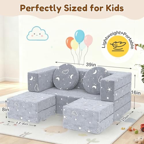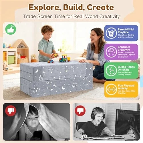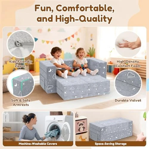 Return Policy Fast Delivery Trusted seller Kids Couch, 6PCS Modular Play Chair with Blanket, Kid Sofa with Glow Effects for Playroom & Indoor, Convertible Toddler Cushions for Girls and Boys Product Description 100% Polyester 【Thoughtful Design & Blanket】The Kids Play Couch is the perfect blend of skin-friendly comfort and style, recommended for children aged 18 months and above. Additionally, a blanket is included, providing warmth and comfort for your child 【6PCS New Modular Kids Sofa】Our 6-piece modular kids play couch offers 3 different shapes and 6 foam blocks that can be endlessly combined, inspiring children's imagination and creativity. Enjoy the kids' sofa by transforming it into various functions. Children's toy sofas can be a rocket, convertible bed, chair, sofa, or anything else children can imagine 【Surprising Nightlight Design】The kids fold out couch features various fun patterns and a unique glow design. Simply expose the sofa to strong light or sunlight for 15-30 minutes during the day, and at night, this toddler sofa will emit a bright shine in the darkness, much to the delight of children. You can enjoy the fun Luminous patterns together with your kid 【A Unique Toy for Kids】This kids sofa creates a truly magical and diverse setting, enhancing interactive activities for the whole family. Children can create different forms and shapes to experience the endless adventures they desire, and easily stack and store them after playtime. Perfect for birthdays, Christmas, and baby shower 【High-Density Foam Sofa】The sofa's foam core is made of high-density material, providing strong rebound and a soft, low-impact surface for kids. Safety is considered in the sofa's design, allowing children to jump, climb, and bounce without any harmful hard edges or sharp corners to bump into! If your child is learning to walk and climb furniture but you're hesitant to let them sit on a regular sofa or risk falling on hard floors, then you definitely need a thoughtful kids sofa like this one 【Washable Zipper Cover】 The detachable sofa cover with hidden zipper is machine washable, ensuring the sofa stays fresh and clean. The fabric is skin-friendly, comfortable, and durable, with resistance to shrinking, fading, and shedding. And suitable for children and those with sensitive skin. The kids couch sofa is a perfect addition to any playroom, inspiring imagination and enjoyable play Shipping Returns Payment Shipping Shipping is FREE to all addresses other than APO/PO boxes in the lower 48 states. All our stock ships from US-based warehouses. Shipped via USPS or UPS (depending on location and package weight) Unless stated otherwise, all orders will ship within 24-72 hours of your payment being processed. Check our feedback to see the great reviews of FAST shipping we offer. Returns Seller does not accept returns Payment We currently accept payment via eBay managed payments only. Once payment is cleared, we will dispatch your shipment within 1-3 business days. Please refer to the "Shipping" tab for more information regarding shipping speed to your destination.