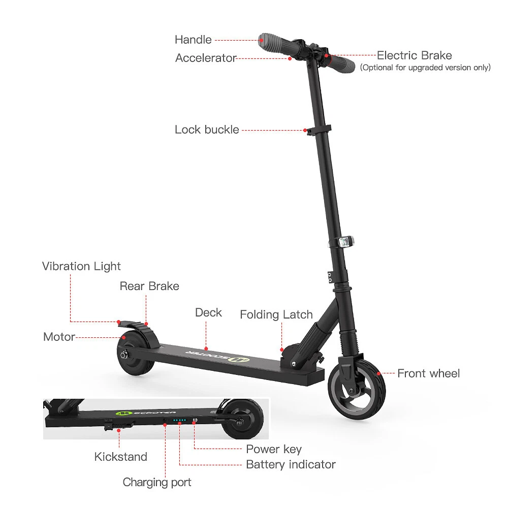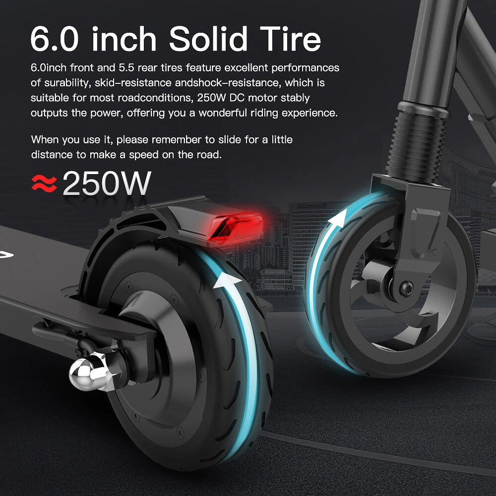 Features: 【Powerful Motor】: The scooter applies 250W brushless motor with 6.0 inch solid front tire and 5.5inch back tire, can achieve the max speed at 23km/h=14MPH. 【Large Capacity Battery】: Fitted with lithium-ion battery 5000mAh, the scooter can provide long full mileage 10-15km. Full charged for only 2-3 hours, will hold climbing ability 15 degrees. 【Design with Material】: M MEGAWHEELS electric scooter is made of aluminum alloy, only 8kg/17pounds ultra-light to be folded, 2 seconds to fold it and easy to store. 【High Level Security】: This S1 scooter applies dual brake system (a motor electronic brake on the handlebar and a foot friction rear brake on the back wheel). Plus LED taillight, shock absorber, with CE/UL/FCC/RoHS safety certification. 【None-0 start】: The electric scooter applies a none-0 start for the safety consideration, please scroll for a distance to start. Recommended age 10+ years old, max Load 68 kg. 76cm, 86cm and 96cm, 3-level height to be adjusted for both children and adults, just have fun with your family Specification: Brand:Megawheels Model:S1 Dimension: Unfolding 900*420*(760-970)mm; Folding: 810*420*290mm Box Size:885*225*355mm Net Weight: 7.5kg Color: as shown Frame Material: Aluminium Materials Tires: 6.0 inch solid front, 5.5 inch back Max Load: 90KG/198LBS Max speed: 23KM/h Mileage: 8-12km Grade Ability: 15 degree slope Brake Type: Power Brake, Mechanic brake(back tire) Mode Type of Motor: Brushless hub motor Rated Output Power: 250W Battery Type:High quality lithium battery Battery Capacity: 5.0Ah Battery Voltage: DC29.4V Charger Input Voltage: 100V-240V Charger Frequent: 50Hz/60Hz Charger Output Current: 2A Charging time: 3 hours Note:S1 Load capacity Recommended 68kg, Max 90kg Package Contents: 1 * Electric Scooter 1 * Battery Charger 1 * User's Manual Note: This products have been certified under UL2272 safety standards. On Feb 26, 2025 at 08:03:59 PST, seller added the following information: