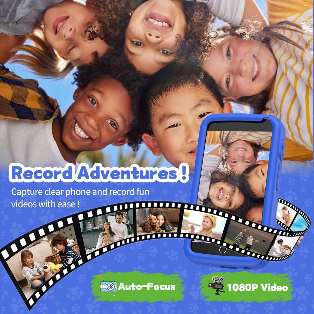 Features: Kids Smart Realistic Cell Phone ToyThe smartphone toy for kids is equipped with a 3.97-inch high-definition touch screen, and the larger screen allows children to experience the true fun of smartphones. Without the need for a SIM card (unable to make phone calls or send text messages). The kids can take photos and videos, listen to music and stories, and play games, satisfying their desire for exploration. 200+Fun Puzzle GamesThe real cell phone toy is designed specifically for children, with over 200 puzzle games built-in to enhance their cognitive abilities. They can stimulate the brain, promote early education, and make learning enjoyable and interactive. The Gift That Children ExpectThe kids always hope to be treated like adults and have the same things as their parents, especially a phone. This kids toy phone is an ideal gift for children aged 3, 4, 5, 6, and 7. It is a great choice for birthdays, Children's Day, Valentine's Day, Easter, Thanksgiving, Christmas, and New Year. Built in 1500mAh rechargeable battery, which can provide 5-6 hours of daily use for children. Education Meets EntertainmentThis kid phone provides ABC learning modules, with each letter having phonetic pronunciation and animal names, making learning both interactive and fun. 24 landmark buildings from different countries enrich children's horizons. At the same time, parents can guide their children to use electronic products correctly by playing with toy phones. Parent child interaction not only increases the fun of interaction between children and toy phones, but also deepens the relationship between parents and children. Portable for Kids Travel ActivityThis lightweight and durable kid smart phone is perfect for use in cars, airplanes, restaurants, or parties, making it easy for children to play while on the go. When camping without internet, it is also a popular toy that can keep children's hands busy. Both boys and girls can use it to play games, listen to music, and take photos with friends during their travels. Safe Kids Toy PhoneThis toy phone is non-toxic, BPA free, and radiation free, safe and reliable, suitable for children aged 3-12 who enjoy playing with their phones. and do not require WiFi. Our kids phone toys have undergone countless tests to ensure compliance with CPC and CPSIA regulatory standards.