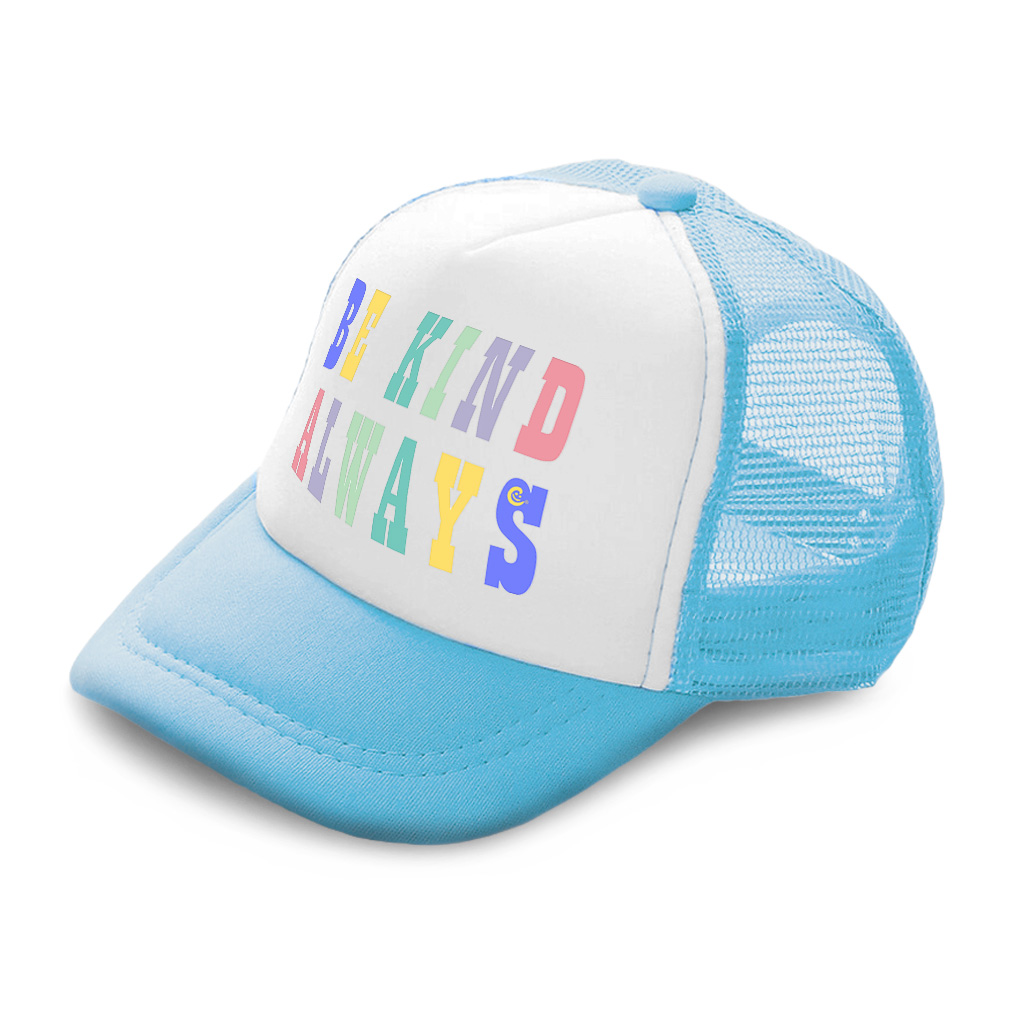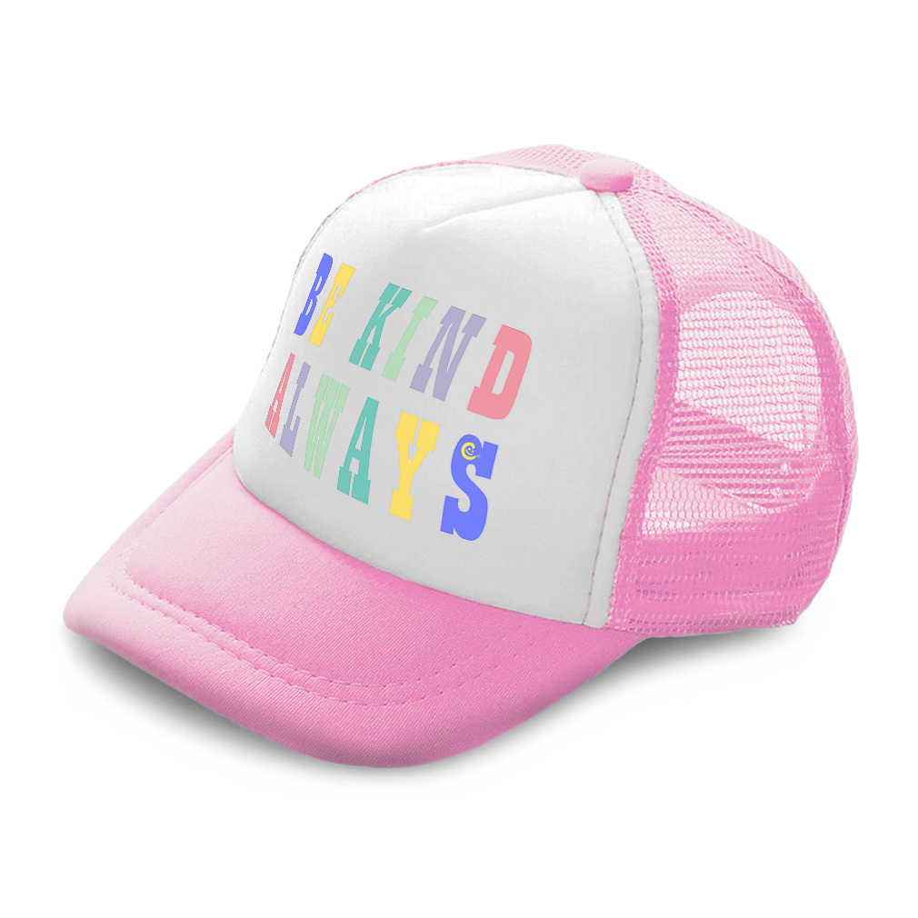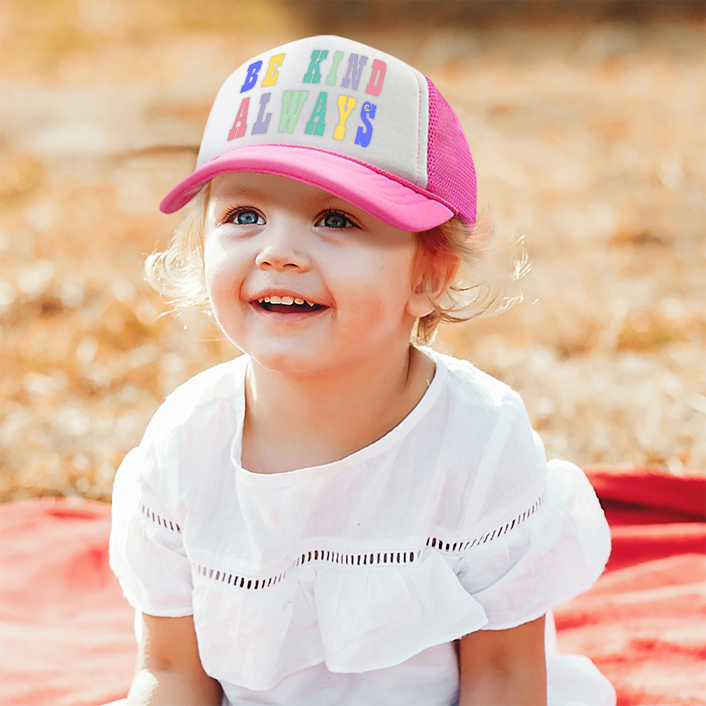 Unisex Toddler Mesh Trucker Caps for Boys & Girls Classic never goes out of style! Our baseball caps will come everywhere with your love ones and will take their outfit to the next level. Don't let them go unnoticed anymore and affirm their unique urban style with these kids trucker hat girls and boys The design's text reads: be kind always GREAT GIFTS FOR DAD IDEA: Unforgettable and unique, it is the perfect gift for kindness boys hats, growth mindset girls hats, mindfulness kids trucker hats, be kind kids baseball caps, birthdays, Christmas, or any other celebrations. These always kindness and love toddler trucker hats are suitable for playing outside, exercising, casual outings to go to the beach, to the park, to school, to the mall or an everyday wear. Our designs are professionally printed with state-of-the-art equipment guaranteed to last for years. We have more than 12 years of experience in the printing industry to offer you stunning detail and rich lifelike colors. All prints are carefully made in our lab in Tampa, Florida. BEST CLASSIC KIDS TRUCKER HAT! ** Made from high quality 100% polyester ** Structured & high-profile style for a trendy look ** Snapback closure for a perfect fit ** Pre-curved bill for maximum sun protection ** Anti-sweat band to stay fresh and dry ** Mesh back panel to enhance airflow and breathability ** Design professionally printed ** Long-Lasting Materials: Take the outfit of your little ones to the next level with our 100% lightweight polyester 6 panels high-profile structured toddler baseball trucker hat that provides maximum comfort. Fits girls and boys! ** SNAPBACK CLOSURE: Our toddler girl hat and kids trucker hat boys feature a snap closure in the back letting you easily adjust the size for a smooth and perfect fit. ** PRE-CURVED BILL: kids trucker hats feature a well-made pre-curved bill to UV protection for kids from the sun and prevent dazzle. They can now play outside without being bothered by the sun! ** ANTI SWEAT BAND & MESH BACK PANEL: Let them stay fresh and dry with our kids hats boys featuring an anti-sweat band and enjoy the mesh panel that enhances airflow and breathability for their comfort. ** Unique Designs And Fun Graphics: We put a lot of thought and time in the design or our toddler and infant baseball cap. We are proud to offer you the best selection of hats for boys & girls, as well as the best variety of Lifestyle and Motivational Teamwork designs. PAYMENT TERMS Ordering And Payment We accept a large variety of payments. You can pay with credit or debit card, Apple Pay, Google Pay, PayPal, or PayPal Credit. We ship items within 24 to 48 hours of a cleared payment. Providing your payment sooner allows us to to prepare and ship your items faster. By Florida State Law, we are required to collect 7% Sales Tax for the items purchased and shipped in Florida. FEEDBACK Please contact us before leaving any negative feedback. If for any reason, you are not happy with your purchase, contact us within 24 hrs of receipt and we will exchange or replace your item, or refund your money! We will make everything we can to make sure you are happy with your order. We will promptly leave positive feedback upon successful completion of the transaction. Shipping Terms HANDLING AND SHIPPING TIME MOST OF ITEMS SHIP FREE. Items that we have in stock are usually shipped within 24 hours. Customized and Personalized items might take up to 36 hrs. That is so that we can pay necessary attention to provide your item to you with best quality. Domestic shipments usually take between 3 to 8 business days. Please keep in mind that during HOLIDAY SEASON that domestic shipment time might extend an extra day or so. If you need an item earlier, you can select priority shipping at check out. International shipping takes 15 to 22 business days. Please allow extra time for weekends and holidays as this will add extra days to the delivery time. We combine shipping for multiple items, so order more and save. RETURN POLICY Speedy Pros is confident you will be satisfied with your purchase. We offer all customers a 30-day money back guarantee. If for any reason you are unhappy with your purchase, you may contact us to process a Return Merchandise Authorization for a refund or exchange. Customer service Please send us an Ebay message through Ebay interface or click here to contact us. We answer most questions within 24-48 hours.