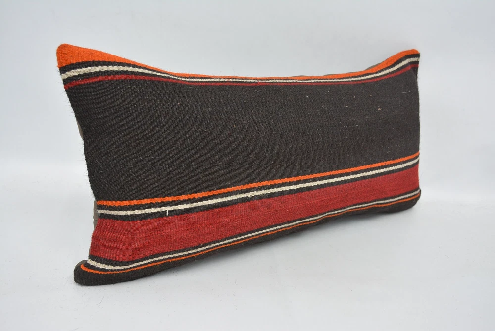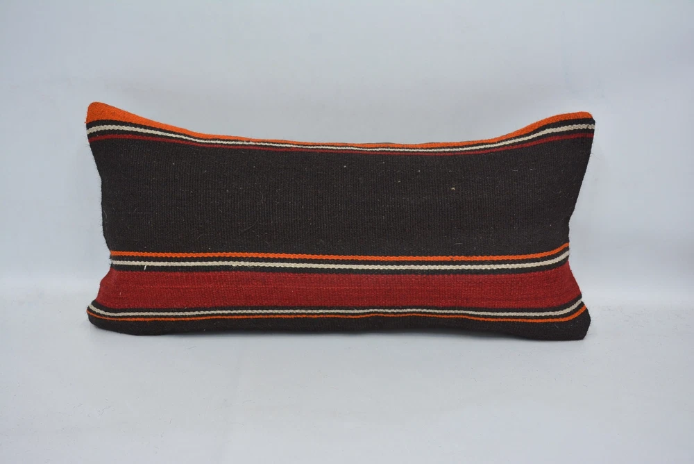 Kilim Pillow, 12"x24" Brown Cushion Case, Pillow for Sofa, Personalized Pillow