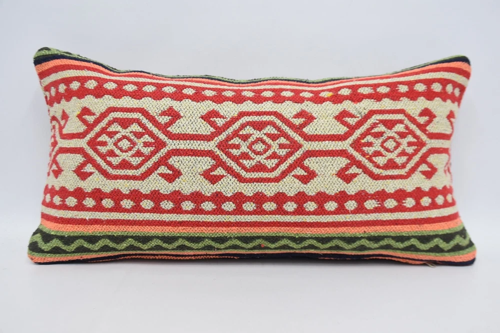 Kilim Pillow Cover, 12"x24" Red Pillow, Kilim Pillow Covers