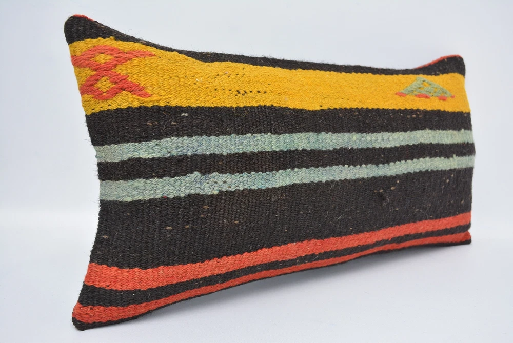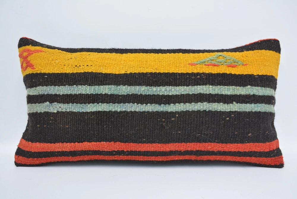 Kilim Pillow Covers, 12"x24" Brown Pillow Case, Kilim Pillow Cover