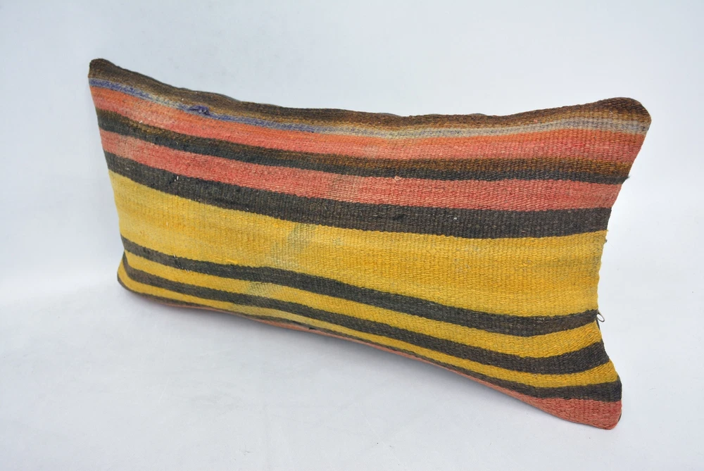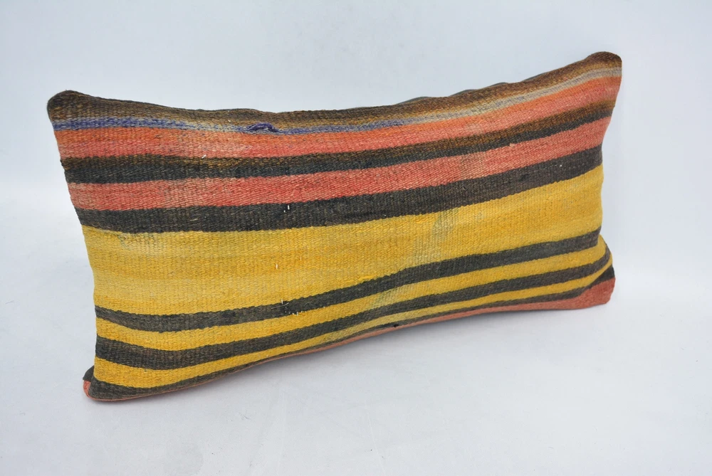Kilim Pillow Covers, Personalized Gift, 12"x24" Yellow Kilim Pillow