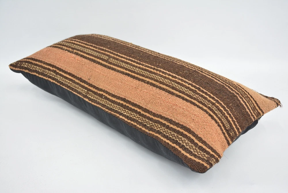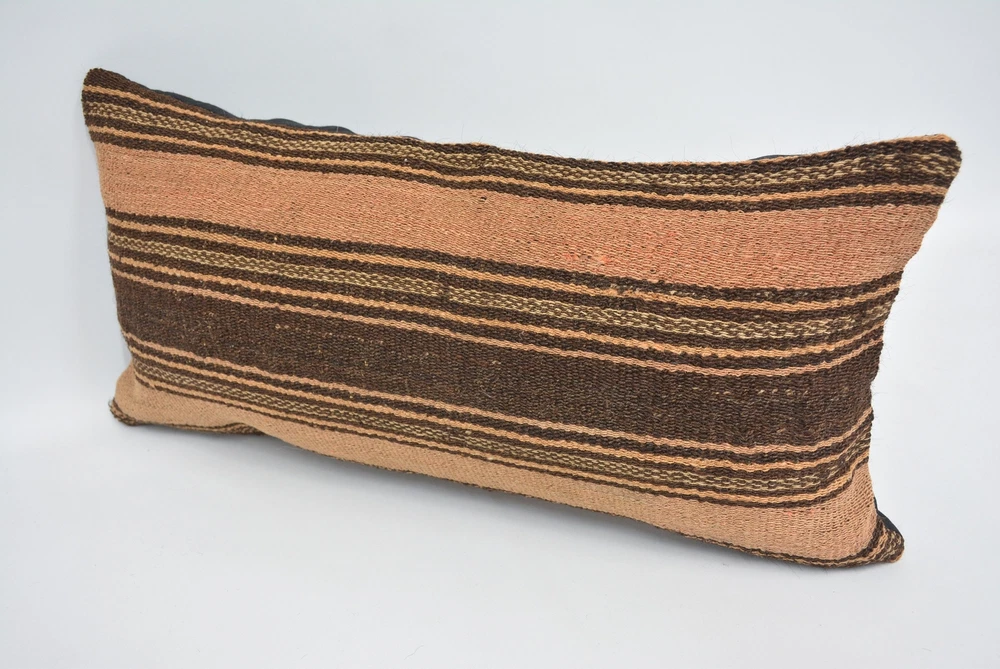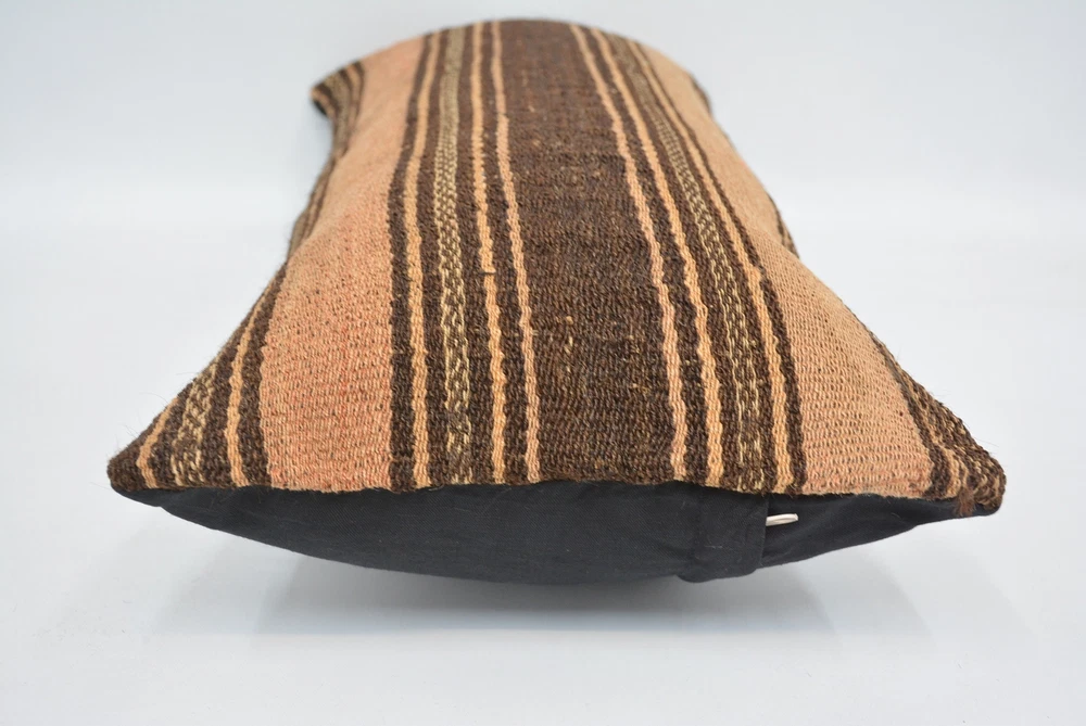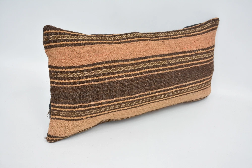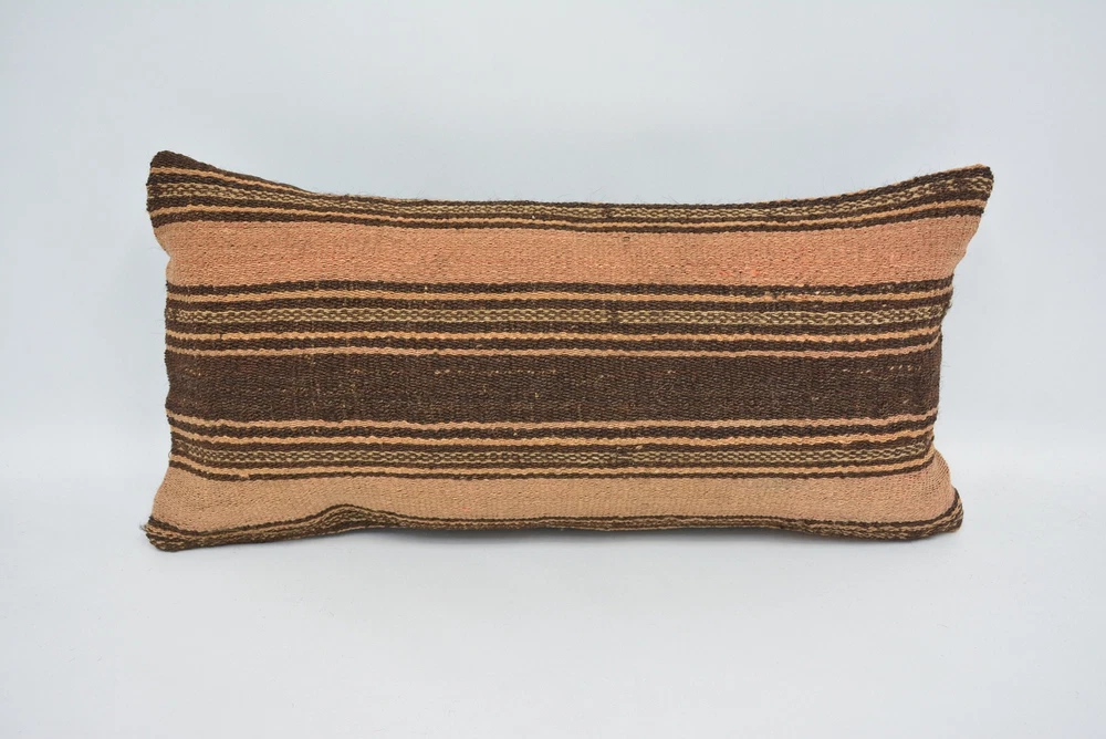 Kilim Pillows, 12"x24" Brown Cushion Case, Turkish Kilim Pillow, Pillow Pillow
