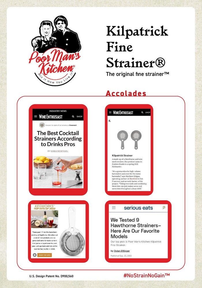 Kilpatrick Stainless Steel Fine Mesh Cocktail Bar Strainer