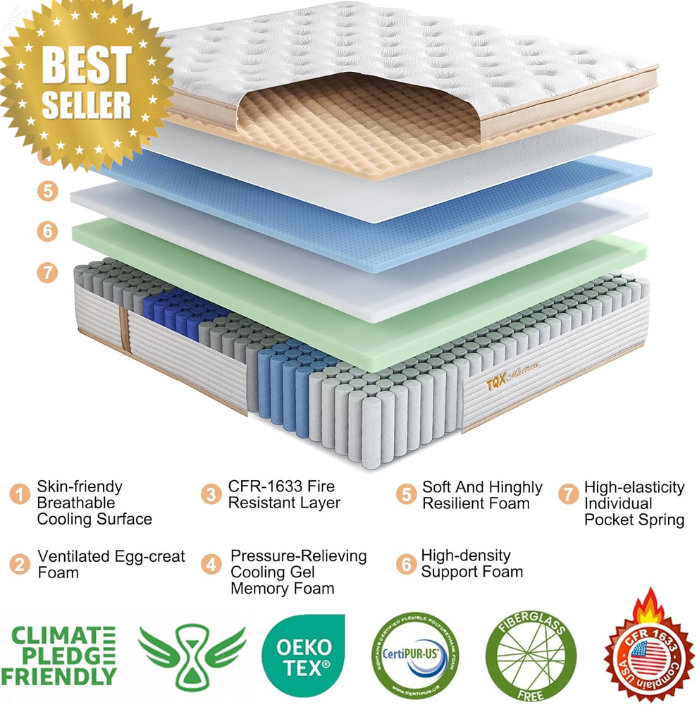 Fa lconbay_US King 14in Hybrid Mattress Medium Firm Gel Foam Pocket Springs CertiPUR 80x76in FEATURES ⚙️ King Mattress — 14″ Hybrid King Size in a Box | Medium Firm Gel Memory Foam & Pocket Springs for Cooling, Pressure Relief, Motion Isolation | CertiPUR‑US® & Oeko‑Tex Certified, Fiberglass‑Free (80″×76″) 🪶 Product Description Upgrade your sleep experience with this 14‑inch Hybrid King Size Mattress — designed to deliver the perfect balance of comfort, support, and durability. 🛏️ Combining plush gel‑infused memory foam with 800+ individually pocketed 2.0 mm pocket springs , this mattress adapts to your body’s shape and sleeping style to provide cooler sleep, pressure relief, and enhanced support night after night. Whether you’re a back, side, or stomach sleeper, the supportive medium‑firm feel and reinforced edge design ensure you get a stable, comfortable sleep surface from edge to edge. With certified safe materials and exceptional motion isolation, this mattress is an ideal choice for couples, light sleepers, and anyone wanting deeper, more restful sleep. 🇺🇸 📏 Specifications • Size: King (80″ W × 76″ L) • Thickness: 14 Inches • Firmness: Medium Firm • Construction: Gel Memory Foam + Individually Wrapped Pocket Springs • Pocket Springs: 800+ (2.0 mm gauge) • Covered With: Breathable Fabric • Certifications: CertiPUR‑US® & Oeko‑Tex Standard 100 • Safety: Fiberglass‑Free & Fire‑Compliant • Shipping: Compressed in a Box (Mattress in a Box) • Expansion Time: 24–48 Hours After Unboxing • Trial: 365‑Night Sleep Trial • Warranty: Forever Service & Brand Support 🔧 Key Features ✅ Supportive for All Body Types: Plush gel memory foam and hundreds of independent pocket springs offer balanced support and targeted comfort across all sleep positions. ✅ Pressure Relief & Spinal Alignment: The hybrid design helps reduce pressure points and aligns your spine — perfect for easing back discomfort and improving sleep quality. ✅ Motion Isolation & Quiet Sleep: Individually wrapped springs help reduce motion transfer so you and your partner sleep undisturbed. ✅ Reinforced Edge Support: Enhanced edges deliver greater stability and a larger usable sleep surface. ✅ Safe, Certified & Eco‑Friendly: Made with CertiPUR‑US® and Oeko‑Tex certified foam, free of harmful chemicals, fiberglass‑free, and fire compliant — safe for your home. ✅ Bed in a Box Convenience: Arrives compressed and rolled for easy shipping and setup — just unbox and let it expand. 🌟 Why You’ll Love It ✔️ Excellent balance of comfort and support for everyday sleep. ✔️ Cools as you sleep — thanks to gel memory foam and breathable design. ✔️ Great for couples thanks to advanced motion isolation. ✔️ Built with safe, certified materials for peace of mind. ✔️ Backed by a 365‑night trial plus ongoing brand support. 📦 What’s in the Box • 1 × King Size 14″ Hybrid Mattress (80″×76″) • Setup & Care Instructions • Trial & Warranty Information 💡 Tips for Use • After unboxing, allow 24–48 hours for your mattress to fully expand to its intended size and comfort. • Keep a safe distance from the mattress as it quickly unfurls during the initial expansion. • Pair with a supportive bed frame or foundation for best performance and longevity. • Use a mattress protector to help keep your sleep surface clean and protected. 📦 Fastest Shipping Guaranteed Unlike other stores that offer cheaper products but come with delivery delays of up to 30 days, we take pride in offering fast and reliable shipping . Based in the American, we guarantee that your order will be delivered within 3–8 days , with no unexpected delays (unless under rare circumstances). When you shop with us, you’re choosing convenience and satisfaction. 📦🚚 ❓ FAQs Q1: Is this mattress good for back and side sleepers? 👉 Yes — the hybrid design and medium‑firm support help with spinal alignment and pressure relief for multiple sleep styles. Q2: Does it help reduce motion transfer? 👉 Absolutely — individually wrapped pocket springs absorb movement to keep sleep undisturbed. Q3: Will this mattress sleep cool? 👉 Yes — gel‑infused memory foam and breathable construction help improve airflow and reduce heat buildup. Q4: How long does it take to expand? 👉 Allow approximately 24–48 hours for full expansion after unboxing. Q5: Is it safe and certified? 👉 Yes — it’s CertiPUR‑US® and Oeko‑Tex Standard 100 certified, fiberglass‑free, and fire compliant for a safe sleep environment. Item model number -9527 Product Dimensions 80"L x 76"W x 14"Th Cover Material Cotton and Polyester Blend Number of Layers 7 Top Style Plush Top Item Weight 93.8 pounds Fill Material Cotton, Gel Memory Foam, High Density Foam, Memory Foam Weight Limit 600 Pounds Size King (Medium Firm) Special Feature Breathable, Fire Retardant, Low Motion Transfer, Pressure Relief Item Firmness Description Medium Firm 76.0 "th x 80.0 "th x 14.0 "th. Weight: 93.8 lb PAYMENT We accept all payments via Ebay using Credit Cards , Affrim, PAYPAL , Apple Pay and many others SHIPPING We are always working hard to ensure your package arrives as soon as possible. Please understand that some factors like weather, high postal traffic, and the performance of shipping companies are outside of our control. DELIVERY & RETURN POLICY We offer a 30-Day Return Policy on items in which you are not completely satisfied with. You have the option of a full-refund.