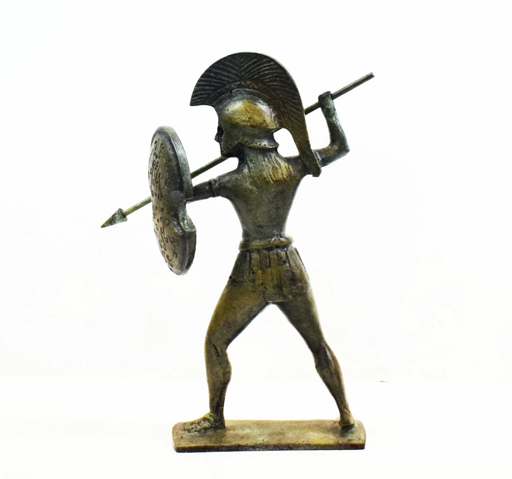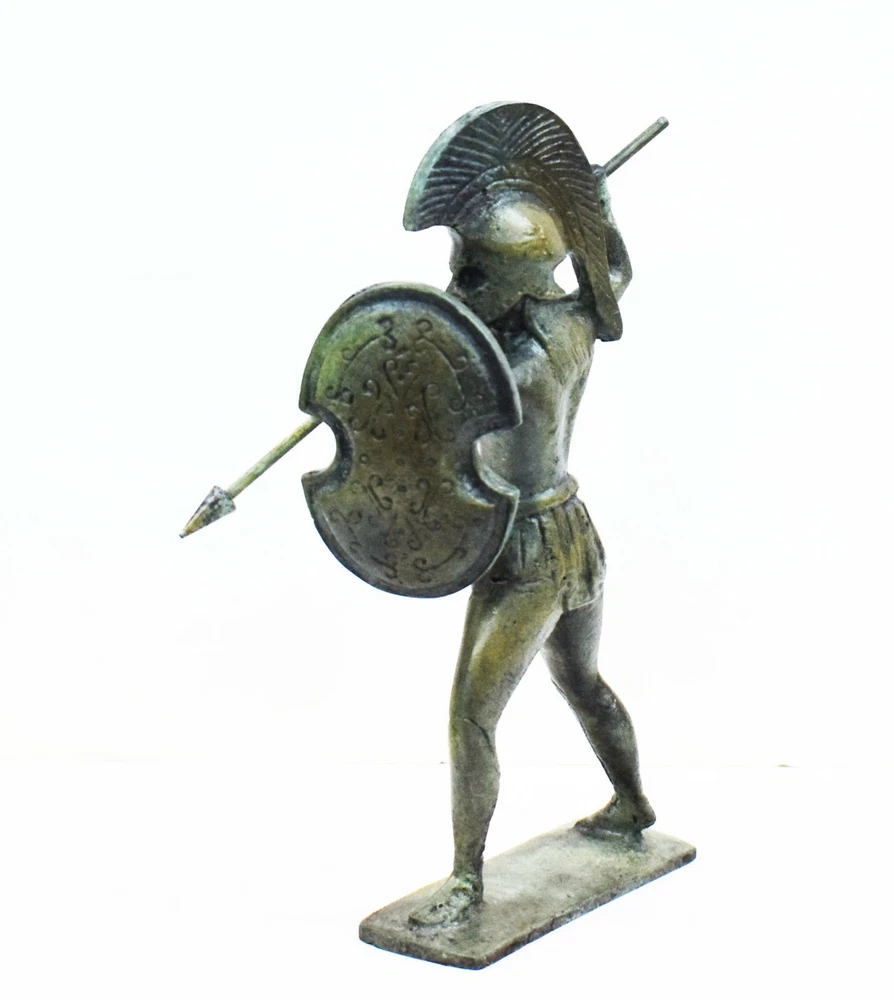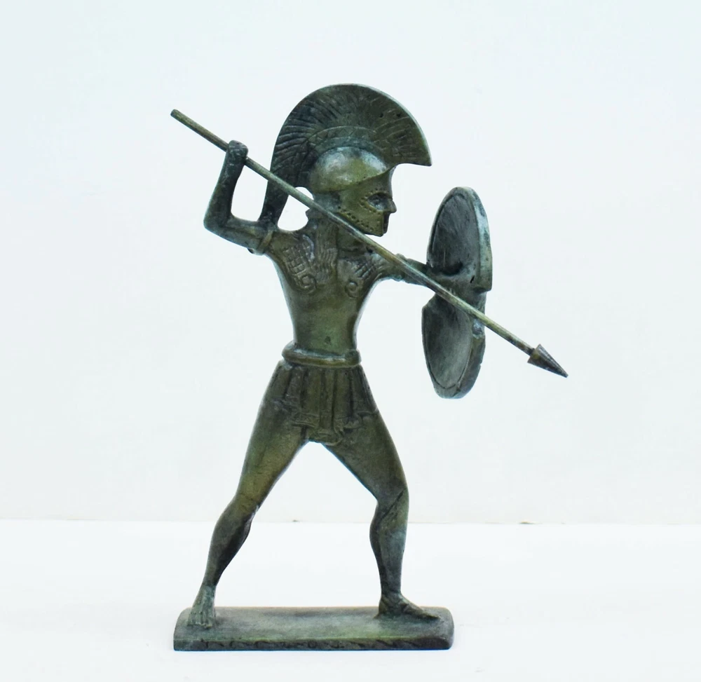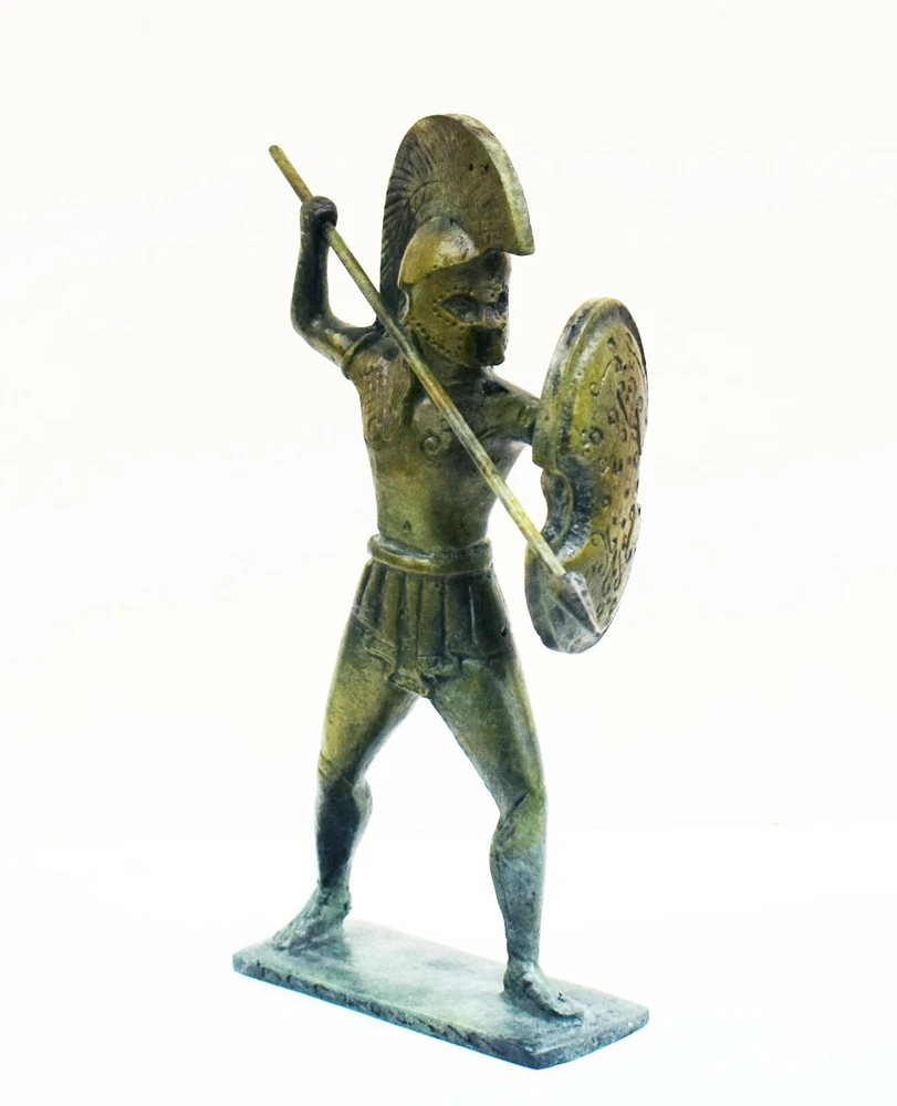 KING ACHILLES STATUE Achilles, in Greek mythology, son of the mortal Peleus, king of the Myrmidons, and the Nereid, or sea nymph, Thetis. Achilles was the bravest, handsomest, and greatest warrior of the army of Agamemnon in the Trojan War. One of the most famous Greek myths, balancing between reality and fiction is the Trojan War, infamous all over the world due to Homer’s Iliad and Odyssey. Trojan War still stirs people’s fantasy and artist’s creative imagination. All our bronze items, are cast in Greece, using the traditional 'lost wax' method. As nothing is mass-produced, there will inevitably be slight variations in patination and colouring. Each piece is, therefore, unique.(112200202802-A) Details: Condition: New, Handmade in Greece Material: Pure Bronze Height: 20 cm(7.8 inches) Width : 12 cm(4.7 inches) Length : 4 cm(1.6 inches) Weight : 1 kg