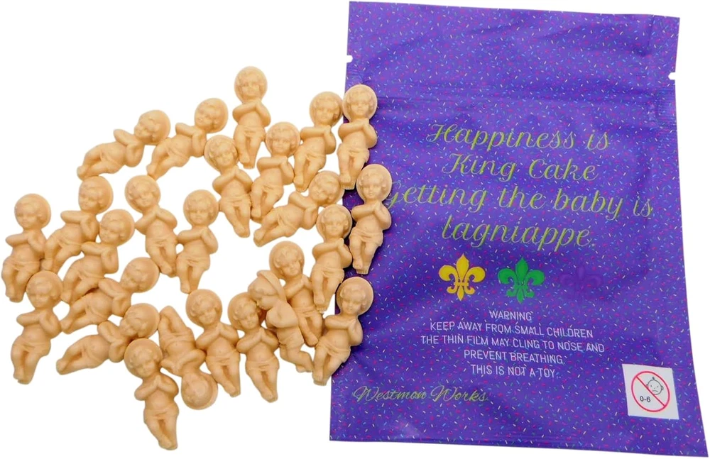 Store New Arrivals Add to Favorite View Feedback Contact Fast deliveries to the customer's home Quality customer service John Make the customers happy! King Cake Babies Bulk Pack Baby Jesus Bundle Figurine in a New Orleans Mardi Gras Themed Souvenir Bag, Set of 25 Description Traditional King Cake babies to enhance your festive celebrations Set of 25, generously packaged to ensure there's plenty for every King Cake or party favor bag Made in the USA, each 1 1/2 inch baby figurine is designed to capture the essence of Mardi Gras traditions Resealable festive bag beautifully adorned with Mardi Gras symbols and messages; perfect for gifting or safe storage ⚠️ NOTE: These King Cake babies are to added after the cake is baked. Safety First: Please note that this is not a toy; ensure they are kept away from small children to prevent any safety hazards Reusable, durable and washable for use in annual celebrations Keep the colorful spirit of Mardi Gras alive in your home or party by using these petite figurines as festive cake toppers Symbol of good fortune, finding a baby in your slice of cake is considered a sign of good luck for the coming year Versatile use beyond cakes, these babies can be used in crafts, decorations, or as part of a Mardi Gras display or for Christmas nativity scenes Product Description Discover the Magic of Mardi Gras with Westmon Works King Cake Babies! Celebrate this festive season with a cherished tradition! Westmon Works King Cake Babies are the perfect addition to your Mardi Gras celebration, bringing a dash of excitement and a taste of New Orleans right to your doorstep. Our extensive collection of King Cake Babies sets is a must-have for any Mardi Gras event. King Cakes King cakes are a sweet symbol of Epiphany, a Christian feast day in January that celebrates the visit of the Magi (the Three Kings or Three Wise Men you might recognize from Christmas nativity scenes) to the Christ Child. This feast day marks the close of the Christmas season as well as the beginning of Carnival, which lasts through Mardi Gras (Fat Tuesday), the day before Ash Wednesday and the start of Lent. The cake is baked in a ring or circular shape to represent a King's crown. This Baby Jesus pack is perfect for adding to your Kings Cake. King Cake Single Baby An easy gift for anyone from the big easy. 3 Pack of Babies We have a 3 pack set of King Cake Babies with cards for each one. Bulk Pack of King Cake Westmon Works also offers a bulk pack of 50 babies! Perfect for bakeries. Small American Family Business Our items are designed and packed by hand in the USA by a small family business in Michigan. Laissez les bons temps rouler! Item model number WW-KC-25 Unit Count 25.00 Count Number of Items 25 Color Beige Product Dimensions 1.5 x 0.5 x 0.5 inches Country of Origin China Item Weight 2.08 ounces Size 2 inch ABOUT US We offer the best prices around on high quality products. Our E-store includes media such as books, movies, music and games while offering electronics, toys, sporting apparel, clothing, tools, general home, garden items and more. SHIPPING We are always working hard to ensure your package arrives as soon as possible. Please understand that some factors like weather, high postal traffic, and the performance of shipping companies are outside of our control. We offer free shipping to the lower 48 states and ship within 2 business days of payment, usually sooner. We do not accept P.O. Boxes. Please provide a physical address. For shipping outside of the continental USA, we only use eBay's Global Shipping Program. The item is shipped to KY and then sent to the rest of the world. International customers are responsible for all duties and taxes. Continue to 'check out' to calculate costs for shipping the item to your country. Messages regarding eBay's Global Shipping Program MUST be directed at eBay EXCLUSIVELY. RETURNS We offer a 30-Day Return Policy on items in which you are not completely satisfied with. You have the option of a full-refund or an exchange of the item. No returns are available on items shipped outside of the USA PAYMENT We accept PayPal. CONTACT US This page content is yet to come Please ad us to your favorite seller and visit again later Thank You CUSTOMER SATISFACTION We try our very best to make sure every customer is completely satisfied. If there's a problem, message us! We're happy to help. WE ACCEPT