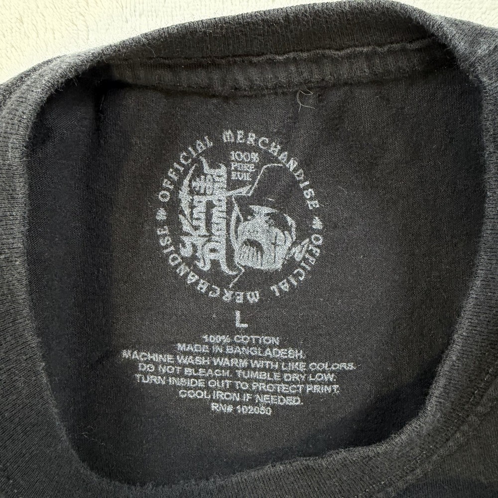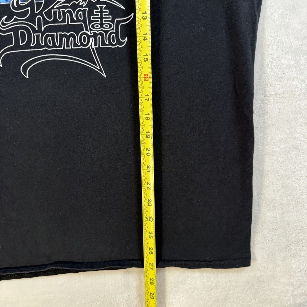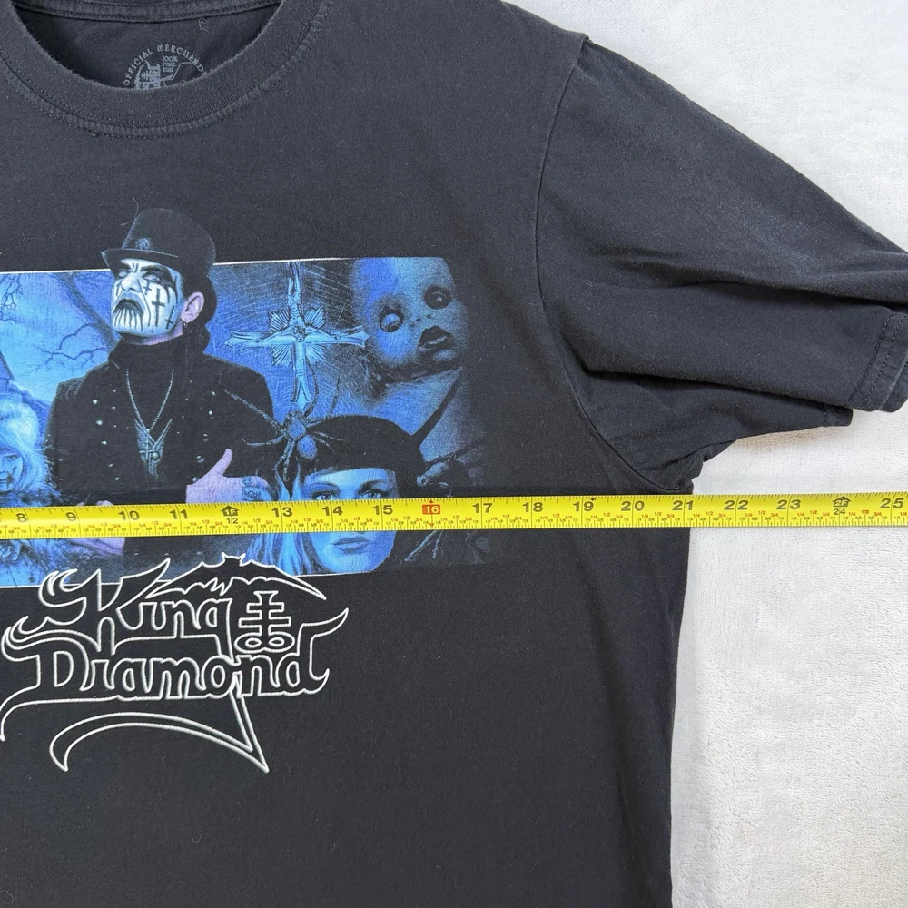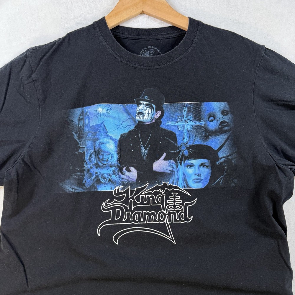 The King Diamond Abigail double-sided t-shirt in size large is a stylish and edgy addition to any man's wardrobe. Made from black material, this regular-fit shirt features a striking design on both sides, making it a unique and eye-catching choice for any casual outfit. The King Diamond brand adds a touch of rock 'n' roll flair, perfect for fans of the band or anyone looking to make a bold fashion statement.
