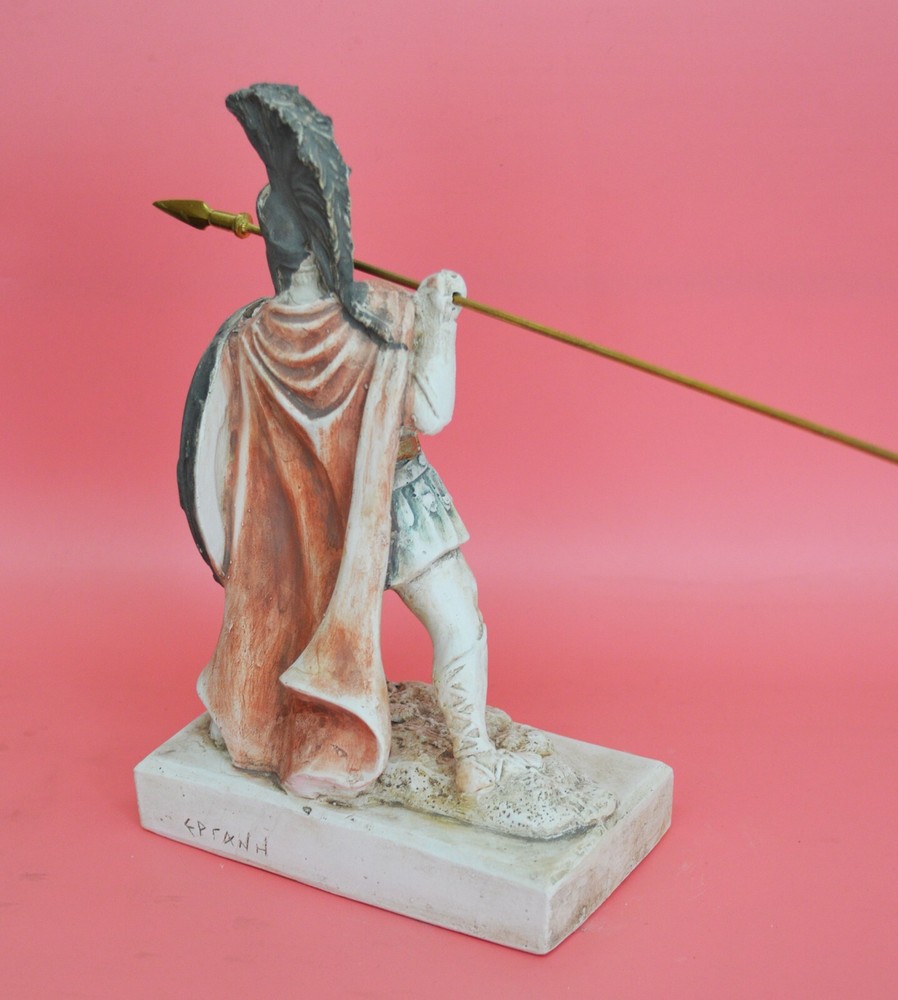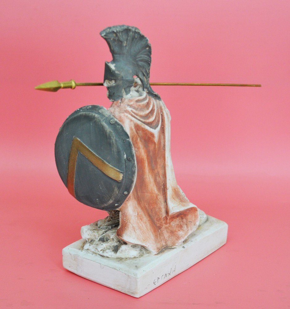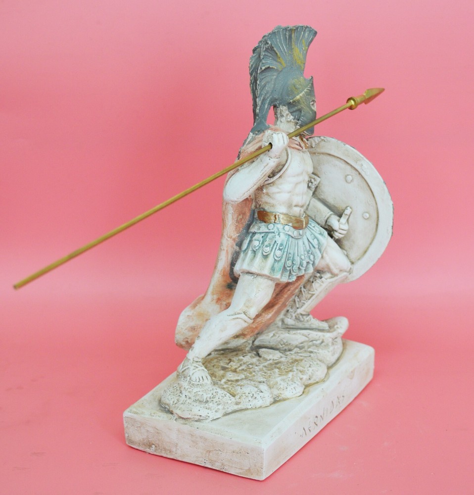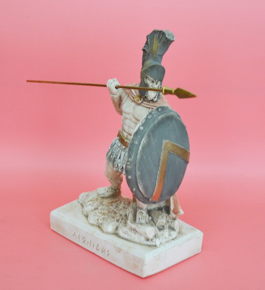 KING LEONIDAS STATUE - SPARTAN WARRIOR Leonidas the Brave was a Greek hero-king of Sparta, the 17th of the Agiad line, third son of Anaxandridas 2 of Sparta who was believed to be a descendant of Heracles, possessing much of the latter's strength and bravery. Leonidas(died 480 BC) stand against the invading Persian army at the pass of Thermopylae in central Greece is one of the enduring tales of Greek heroism, invoked throughout Western history as the epitome of bravery exhibited against overwhelming odds. Please be aware that, due to the fact that our products are either individually cast, carved, hand painted and hand finished, there will inevitably be minor variations in size, colour and texture.(B304-1) Details: Condition: New, Handmade in Greece Material: Casting stone Height: 21 cm - 8.3 inches Width: 13 cm - 5.1 inches Length: 10 cm - 4 inches Weight: 900 g ********