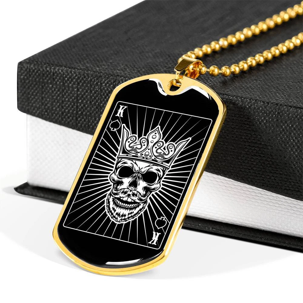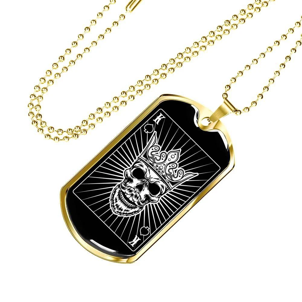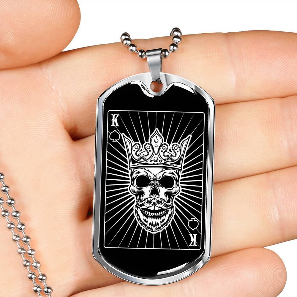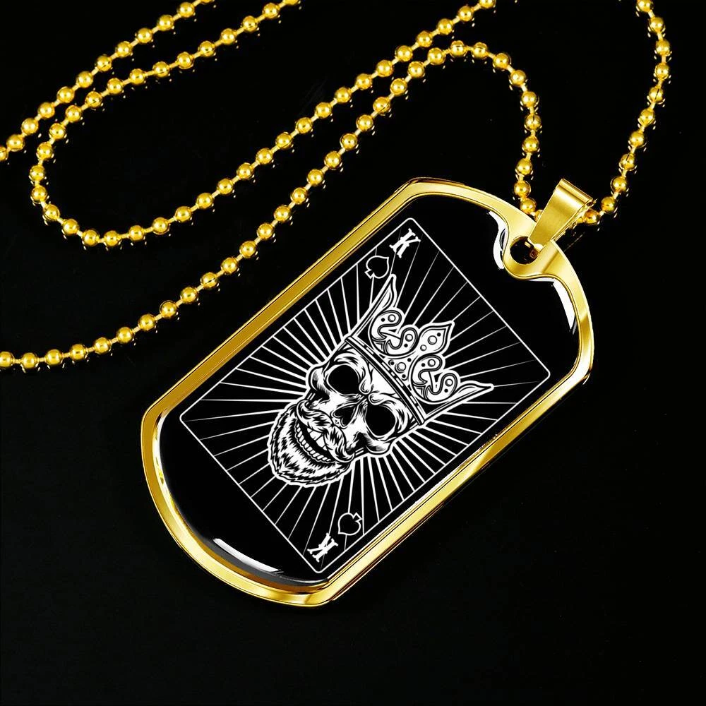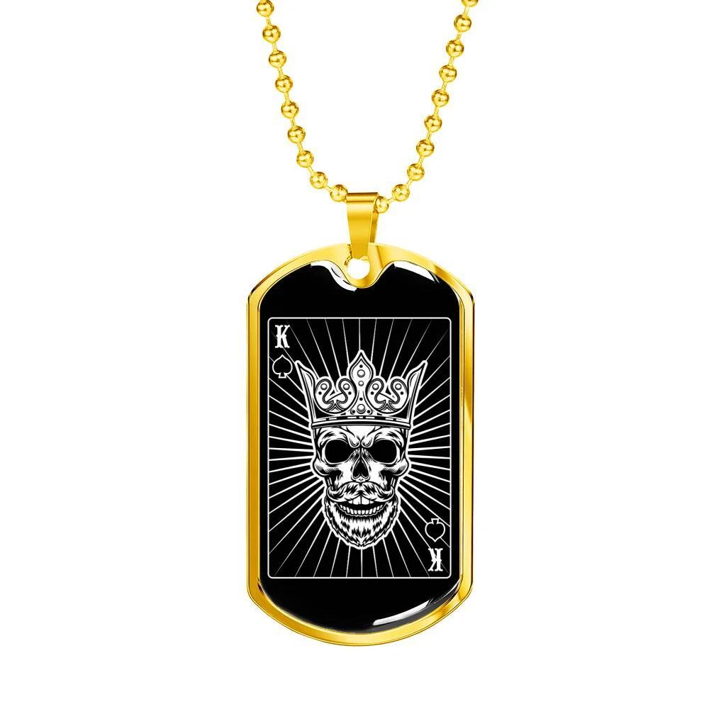 Gold King of Hearts Dog Tag – Stainless Steel or 18K Gold with 24" Chain
