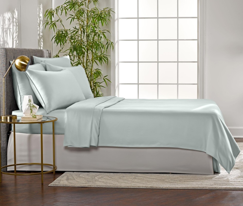 King Sheets by Pure Bamboo, Genuine 100% Organic Viscose Derived from Bamboo Bed Sheet Set, Luxuriously Soft & Cooling, Double Stitching, 2 Year Quality Promise (King, Sea Glass) Product Details Color: Sea Glass Size: King Brand: Pure Bamboo MPN: PBS-king-seagls UPC: 759614708252 EAN: 0759614708252 Size: King Material: Viscose Derived from Bamboo Color: Sea Glass Pattern: Solid Brand: Pure Bamboo Size: King Material: Viscose Derived from Bamboo Color: Sea Glass Pattern: Solid Brand: Pure Bamboo Number of Pieces: 4 Special Feature: Genuine 100% Organically Grown Viscose Derived from Bamboo, 2 Year Quality Promise Guarantee, Luxuriously Soft & Cooling, Deep Pocket, Envelope Closure Pillowcases Style: Modern Included Components: Pillowcase, Fitted Sheet, Flat Sheet Thread Count: 300 Product Care Instructions: Machine Wash, Low Heat Tumble Dry Seasons: All Item dimensions L x W x H: 13.4 x 10.3 x 3.9 inches Weave Type: Sateen Pillowcase Quantity: 2 Unit Count: 1.0 Count Sham Quantity: 2 Fitted Sheet Pocket Depth: 16 Inches Manufacturer: Pure Bamboo UPC: 759614708252 Product Dimensions: 13.4 x 10.3 x 3.9 inches Item Weight: 6.65 pounds Country of Origin: China Item model number: PBS-king-seagls Is Discontinued By Manufacturer: No Fabric Type: 100% Viscose Derived from Bamboo Batteries required: No 100% Viscose Derived from Bamboo GENUINE 100% ORGANICALLY GROWN VISCOSE DERIVED FROM BAMBOO - Crafted from the finest quality luxusiously soft 100% Organically Grown Viscose derived from Bamboo, and are OEKO-TEX Standard 100 Certified and tested to be free from over 100 harmful substances, ensuring that it is safe and healthy for your family. Our bed sheets are never blended with other fibers or fabrics unlike most competitors. COMPLETE 4-PIECE KING (76"x80") BED SHEET SET - Includes 1 fitted sheet, 1 flat sheet and 2 envelope-style pillowcases with overlapping closure. The pillowcases and flat sheet feature quality sewn double-stitched seams to ensure long-lasting durability and easy care with cold water washing, while offering a sensuous silky feel that grows luxuriously softer with every wash. ULTIMATE COOLING SOFTNESS AND BREATHABLE COMFORT - Viscose derived from bamboo fabric is naturally thermo-regulating to keep you cool and relaxed while sleeping and providing all season comfort. The moisture-wicking properties of our resort-grade bedding is perfect for hot sleepers or those with sensitive skin while indulging in the ultimate luxurious softness. DEEP FITTED POCKETS, 300 THREAD COUNT SATEEN WEAVE - Features fitted sheets that have a fully elasticized border to ensure a snug fit for any mattress up to 16 inches thick. All bedding is made from 300 thread count sateen weave fabric for a softer, smoother and more silky feel than even the highest thread count cotton sheets. 300 thread count is the optimal choice for pilling resistance as higher thread counts mean thinner and weaker fibers. 2 YEAR GUARANTEE - Every bedding purchase is backed by a risk-free 2 Year Guarantee against defects in materials and craftsmanship. Sleep soundly on these soft as silk sheets, knowing that our sheets are made from responsibly sourced materials. Designed in Florida and Imported from China. All fabric has been subjected to rigorous testing standard for flammability (Passed/ASTM F963-A6), heavy metals (Passed/ASTM E1479-16), and phthalates (none detected per CPSC CH C1001-09.3)