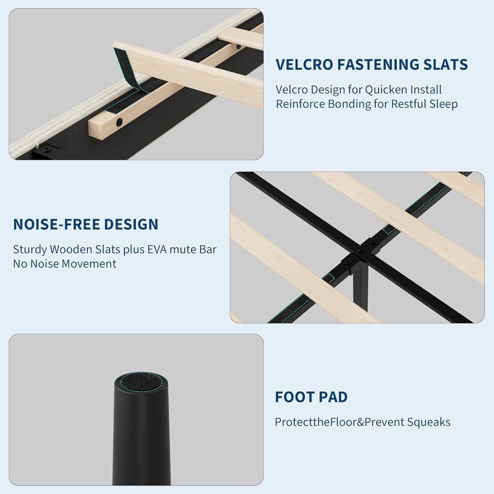 Metal & Wood Double Bed Frame with Headboard, Slatted Foundation, Modern