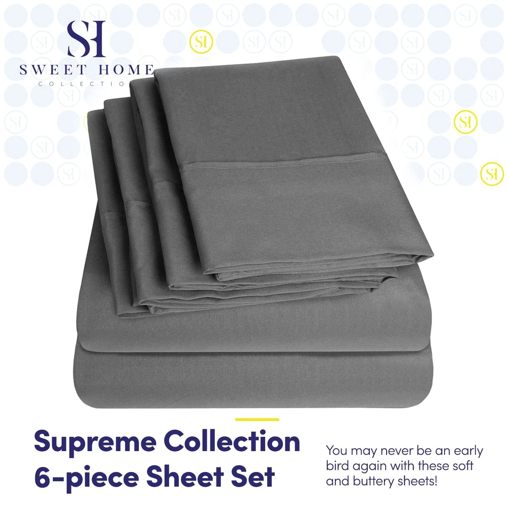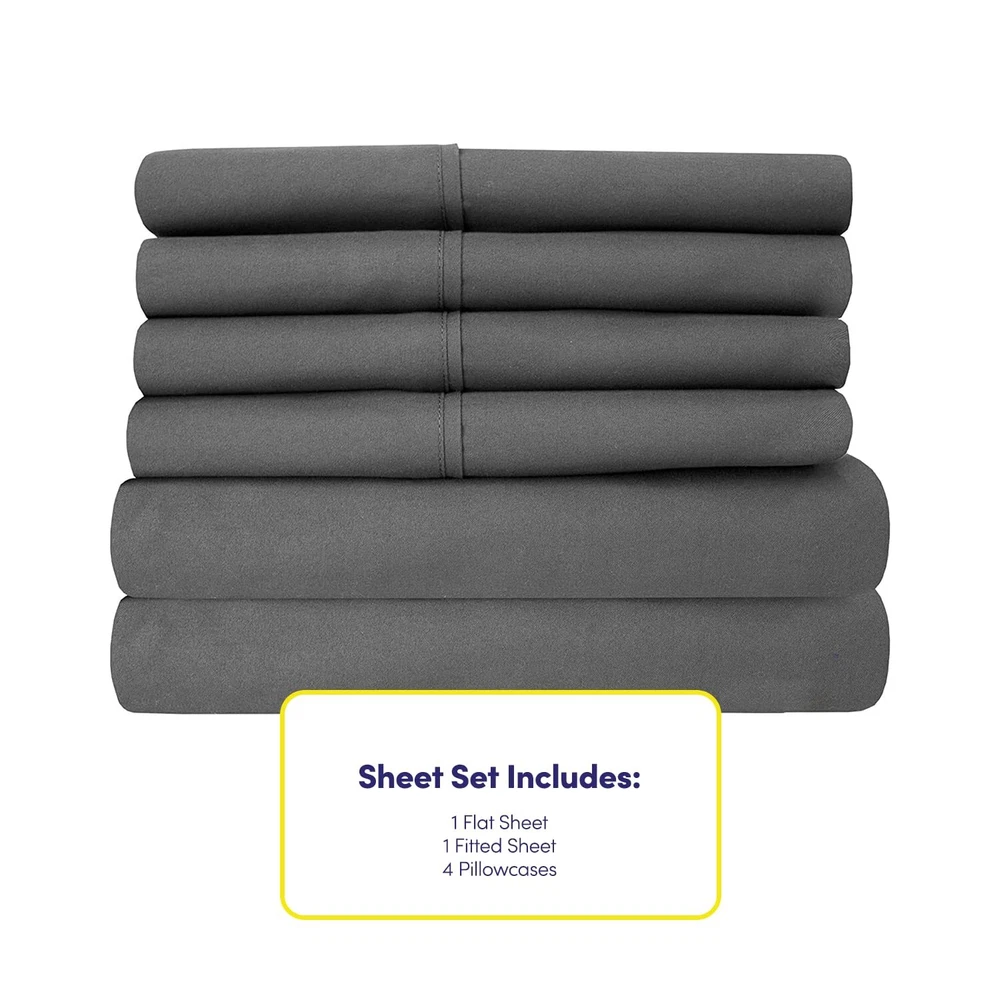 Transform your bedroom into a sanctuary of comfort and style with our luxurious 6-piece bed sheet set, meticulously crafted to provide the ultimate sleeping experience. Made from premium quality microfiber fabric, these sheets boast an irresistibly soft texture that will envelop you in pure bliss as you drift off to sleep. Say goodbye to rough, scratchy bedding and hello to the indulgent embrace of our sumptuous sheets, designed to pamper you with every touch. Whether you're curling up with a good book or drifting off into dreamland, our bed sheet set promises unparalleled comfort and relaxation, night after night. Experience the difference of a secure and snug fit with our innovative built-in sheet straps, ensuring that your sheets stay in place throughout the night. No more waking up to find your sheets bunched up at the foot of the bed or slipping off the corners. Our sheet straps are designed to provide maximum grip and stability, so you can enjoy uninterrupted sleep without the hassle of constantly readjusting your bedding. With our bed sheet set, you can rest easy knowing that your sheets will stay securely in place, even if you toss and turn during the night. Say goodbye to restless nights and hello to a peaceful and restorative sleep experience. Add a touch of personality to your bedroom with our wide selection of over 40 captivating colors and prints. Whether you prefer classic neutrals, bold hues, or eye-catching patterns, we have the perfect option to complement any decor style or personal taste. Mix and match different colors and prints to create your own unique bedding ensemble that reflects your individual style and personality. Elevate the aesthetic appeal of your bedroom and make a statement with our stylish and versatile bed sheet set. With so many options to choose from, the possibilities are endless. Each set includes a flat sheet, fitted sheet, and four pillowcases (except for twin and twin XL sizes, which come with two pillowcases), providing everything you need for a complete bedding ensemble. Our bed sheet set takes the guesswork out of styling your bed, offering a convenient and coordinated solution that is both functional and fashionable. Enjoy the convenience of a fully coordinated bedding look that exudes sophistication and elegance. Treat yourself to the luxury of premium quality bedding that offers both style and comfort in one convenient package. Experience the ultimate in comfort and style with our luxurious 6-piece bed sheet set. VALUE PACK: Our 6 PIECE Sheet set includes 2 more pillowcases than the inry standard 4-Piece Sheet set. SUPERB SHEET SET – Treat yourself to a matching sheet set for any and all of your bedrooms! Each luxurious sheet set contains 1 fitted sheet, 1 flat sheet, and 2 standard pillowcases. Finding a terrific basic sheet set on at a terrific value just become easier. This sheet set is a great gift idea for men, women, mothers, fathers, children, college students, all ages and for holidays, Christmas, Mother's, Father's, Valentine's Day, birthdays, special occasions. Surprise your friends and family with these elegant and durable sheets. PERFECT FIT FOR ANY BED – Sleep soundly for years to come! Your deep pocket sheets are fade, shrink, and avoid wrinkle . No matter if you need toddler bedding sets for boys, full size sheets for your teen, or queen and king size sheet for yourself, we’ve got you (and your bed) covered. SLEEP TIGHT SATISFACTION GUARANTEE – Get a good night’s sleep knowing your affordable bedroom decor also comes with access to top-notch customer service! 6 PIECE SET VALUE PACK: Our 6 Piece Sheet set includes 2 more pillowcases than the industry standard 4-Piece Sheet set. Following requests from customers we have added 2 Pillowcases prepacked with a 4 Piece Sheet resulting in more than a 50% SAVING on additional pillowcases that would normally be sold separately. Add style, comfort and luxury to your bedroom with these sheet sets. They promote the great night's sleep you've been looking for, making every morning a refreshing one. These sheets look/feel good at home, vacation, kid's room, guest room, college dorm. Our goal is to figure out how we can provide more savings and more quality to our customers. KING SIZE LUXURY BED SHEET SET MEASUREMENTS: 1 Flat (102"x105") 1 Fitted (78"x80") and 4 King Pillowcases (20"x40") w/ deep pockets that fit mattresses up to 16" deep with elastic around the fitted sheet. These sheets grip and fit better than any other sheet set! Bed sheet set is designed to fit nearly all mattresses with a depth that does not exceed 16". With added stretch and durable elastic the fitted sheet is designed to stay snug and fitted to your mattress. Use the pouch on the inner flap of the pillowcases to hold pillows inside while hiding the pillow as well. Finding a terrific basic sheet set on Amazon at a terrific value just become easier. This sheet set is a great gift idea for men, women, mothers, fathers, children, college students, all ages and for holidays, Christmas, Mother's, Father's, Valentine's Day, birthdays, special occasions. Surprise your friends and family with these elegant and durable sheets. Order our sheet set and share your feedback. We are constantly listening and monitoring our customer feedback. Egyptian Quality sheets at a great value! These 6 piece sets exceed comfort expectations, and are at a lower price than other sheet sets. Get more bang for your buck. Our 6 piece sets provide more value and flair than all the rest. We encourage customers to reach out and contact the brand regarding your experience. We want you to be 100% satisfied with your purchase and we pride ourselves on offering the best customer service in the business. Whether you’re calling with a simple question or telling us about your experience with one of our products, we strive to give each and every customer a personal experience. Care Instructions: Machine wash in cold water with similar colors. Tumb
