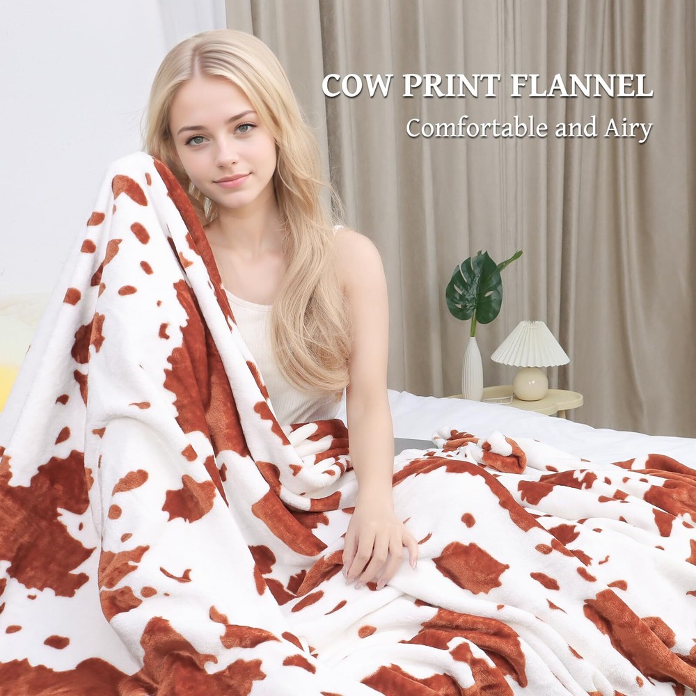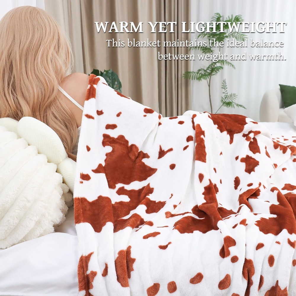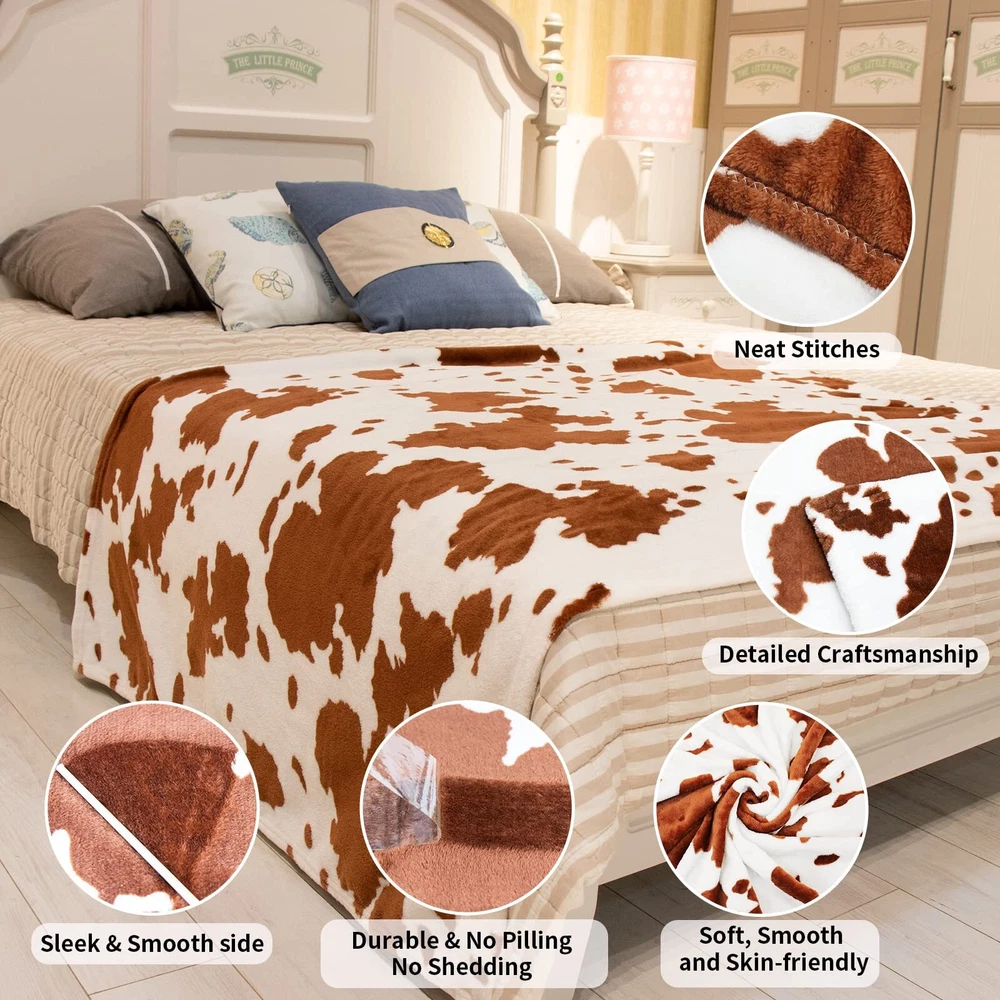 King Size Blanket Brown Bed Throw Blanket Soft Lightweight King Blankets 90x108inch Plush Cozy Fuzzy Fleece Blanket Home Decor for Bedroom TRUSTED BRAND- Please clean the cow print blanket in the washing machine and dryer clean the cow fleece blanket separately.(Machine wash - gentle cycle. Tumble dry - low heat). SOFT WARM- Adopting a new generation print and dyeing, it does not fade and does not lint. This is a very elaborate craft blanket, the cow print blanket has a comfortable quality fabric. The flannel double-sided cow blanket is made of microfiber, lightweight, soft, and warm enough to be comfortable for children, babies, and family members. VERSATILE COW BLANKET- Small Size(40"x50"): suitable as a Baby blanket for children's naps and as a swaddling blanket for babies. Throw Size("50x60"): lightweight and easy to carry, suitable as an outdoor blanket, couch blanket, and travel blanket. Twin Size(60"x80"), Queen Size(90"x90"), King Size(90"x108"): will be more suitable to use on bed and couch. Good for relaxing at home, while reading, watching TV, using your tablets, outdoor sporting events, and concerts. Suitable For All seasons- Our cow print design blankets are both warming and breathable. They will warm you up in winter and chilly summer nights. Hence, they are perfect for year-round comfort! Good choice for gifting for People of all ages. Fits into any room in the house - bedroom, guest room, kid’s room, vacation home, living room or take it along for RV trips. GIFTS FOR ALL AGES- This cow blanket is an ideal gifts for cow lovers. The cute cow style can match your bedroom, and livingroom well. The good gifts for the holidays, Birthday, and special occasions. Could be offering as bed blanket, shawl blanket, air-conditional blanket, nap blanket, kids blanket, travel blanket, camping blanket, picnic blanket, swaddle blanket, play mat, or pet blankets. So it's great gifts for mom, father, friends, girls, boys, kids, teens, boyfriend, girlfriend,pets, ect.