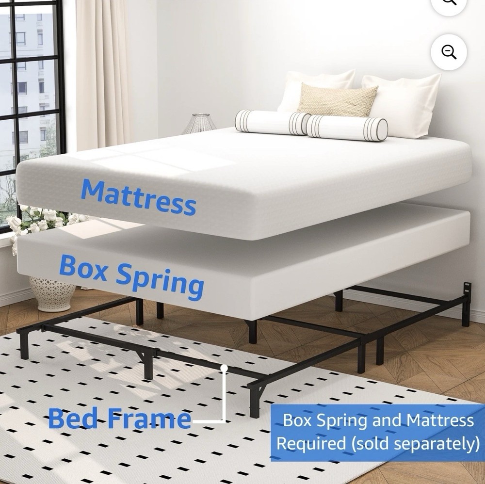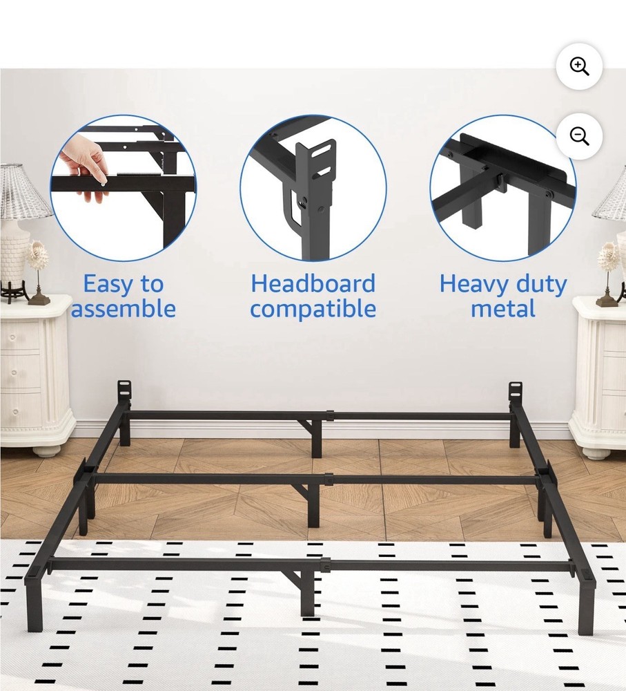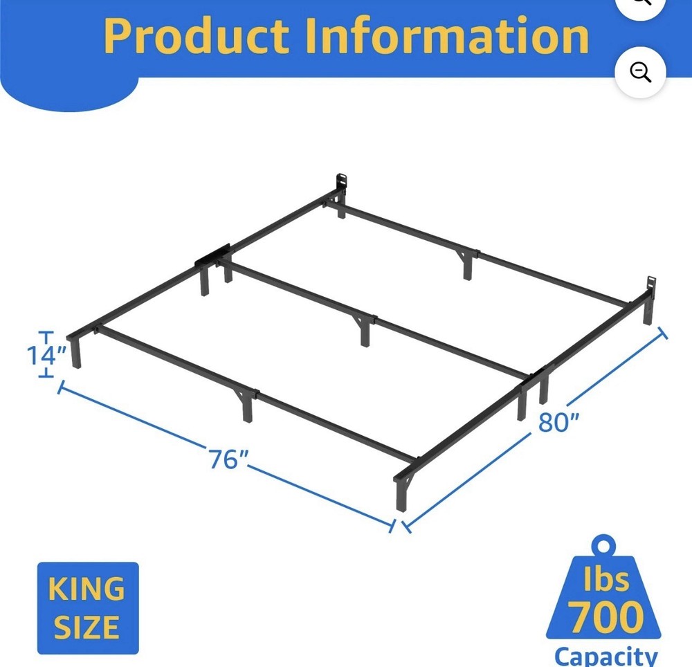 King Size Heavy Duty Metal Bed Frame, Headboard Compatible, Black, 76x80x14 in
