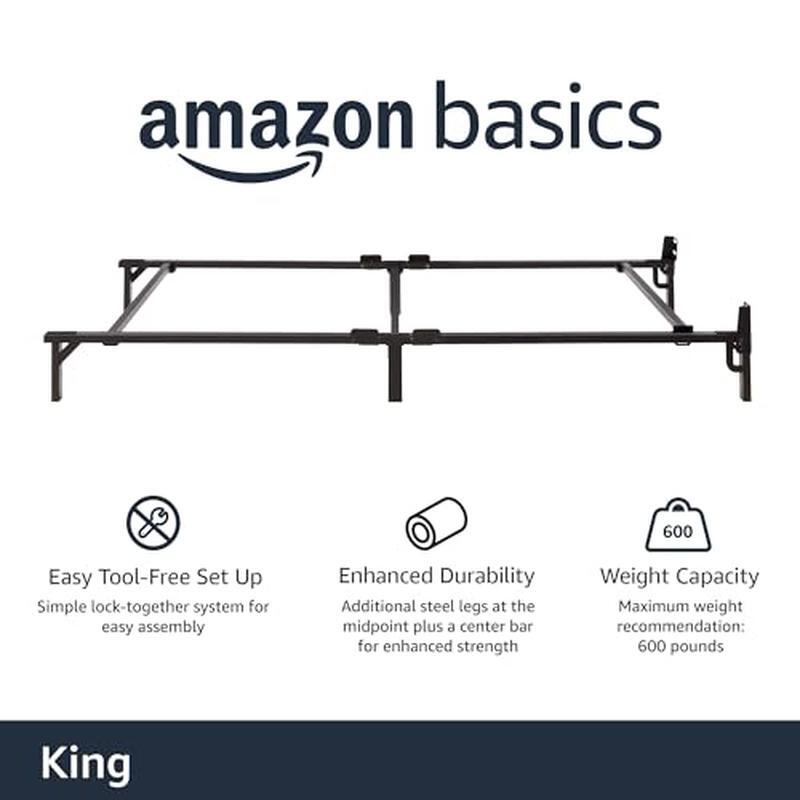 3 Ton Bottle Jack All-in-One 6000 Pound Jackstand Car Lift Heavy Duty Vehicle US 134.36 USD 142.94 USD Free shipping 6% off Outdoor Freestanding Patio Space Heaters Propane Gas Stainless Steel 48000 BTU 207.18 USD 220.4 USD Free shipping 6% off Flexzilla Garden Hose 5/8 in. x 100 ft., Heavy Dut 119.09 USD 126.69 USD Free shipping 6% off 3 Tier Folding Bookcase Stackable Solid Wood Sturdy Shelves Storage Espresso US 83.04 USD 88.34 USD Free shipping 6% off Commercial Electric Meat Slicer Deli Food Slicer w/ Removable 8.5" Blade Cheese 173.38 USD 184.45 USD Free shipping 6% off 50 Gal Stacker Tote Plastic Storage Boxes Channeled Heavy Duty Latches Bin 3 Pcs 122.75 USD 130.58 USD Free shipping 6% off Glider Rocking Chair Ottoman Cushion Set Recliner Furniture Baby Nursery Seat US 195.9 USD 208.4 USD Free shipping 6% off 3500 GPH 1HP Submersible Water Pump W/ Float Switch Garden Pond Flood Irrigation 73.31 USD 77.99 USD Free shipping 6% off 3 Tier Heavy Duty Utility Cart Wire Rolling Service Cart w/ Handle Bar Shelf New 92.86 USD 98.79 USD Free shipping 6% off Resin Deck Box Storage Organization Patio Furniture Outdoor Cushions 71 Gallon 217.43 USD 231.31 USD Free shipping 6% off Digital Wall Mount Safe Flat Electronic Anti-Theft Touchpad Home Office Security 136.88 USD Free shipping Automotive Marine Battery Charger Waterproof W/ Extra-long cable Fully Automatic 52.6 USD 55.96 USD Free shipping 6% off About this item King-size bed frame provides support for your box spring and mattress Made of durable steel with 9 legs (3 rows of 3) and a center bar for added support and stability Simple lock-together system for easy assembly (no tools needed) IMPRESSIVE WEIGHT CAPACITY: Twin size supports 350 lbs; Full, Queen, King & California King sizes hold up to 700 lbs total (350 lbs per person max for all sizes) Product Dimensions: 79. 6 x 76 x 7 inches (LxWxH) Box spring and mattress required (sold separately) Size King Product Dimensions 79. 5"L x 75. 5"W x 7"H Special Feature Durable Color Black Finish Type Black Finish,Steel Material Steel Style Modern Maximum Weight Recommendation 700 Pounds Item Weight 8. 16 Kilograms You may also like Modern Adjustable Swivel Accent Chair Black Faux Leather Upholstery 28x23x36 New 152.97 USD 162.73 USD Free shipping 6% off 32 Fluid Oz Tube Anti-Chafe Chamois Cream Original for Cyclists Vegan New US 84.49 USD Free shipping Goose Feather Down Pillows Set of 2 Standard Cotton Cover Soft Support New 59.17 USD 62.95 USD Free shipping 6% off Powerful Compact 1/2 HP Continuous Feed Garbage Disposal W/ Power Cord New 122.17 USD 129.97 USD Free shipping 6% off 13ft Extra Long Locking Wet Dry Vacuum Hose 2-1/2 Inch Diameter Attachment New 45.61 USD 48.52 USD Free shipping 6% off Cream Mushroom Upholstered Ottoman Collapsible Storage Solution 200lb Capacity 64.11 USD 68.2 USD Free shipping 6% off Portable Baby Bassinet Play Space Canopy Removable Toys Folds Flat Travel New 105.08 USD 111.79 USD Free shipping 6% off Rollerblade Office Chair Wheels Smooth Quiet Casters Universal Fit Set of 5 New 52.49 USD 55.84 USD Free shipping 6% off Double Micro-Filtered French Press Durable Coffee Tea Maker Grit Free Brews New 56.34 USD 59.94 USD Free shipping 6% off Rustic Brown 3-Piece Coffee & End Table Set Metal Frame Sturdy Easy Assembly New 139.5 USD 148.4 USD Free shipping 6% off 24x24 Decorative Pillow Insert Down Feather Fill Cotton Cover Made in USA 50.09 USD 53.29 USD Free shipping 6% off Writing Desk Large Tabletop for Residential Use Composite Wood Easy Assembly New 81.82 USD 87.04 USD Free shipping 6% off