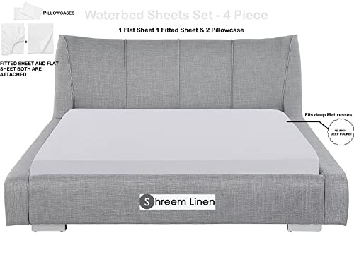 Menu 1. We require immediate payment. 2. We currently accept payment via eBay managed payments only. 3. Once payment is cleared, we will dispatch your shipment within 1-3 business days. Please refer to the "Shipping" tab for more information regarding shipping speed to your destination. Waterbed Sheets King Size Attached Waterbed Sheets 100% Egyptian Cotton 600-Thread Count 4 Piece Sheet Set 15" Deep Pocket Attached Waterbed Sheet Set in Solid (White, King) Product description LUXURIOUSLY THICK AND CLOSELY WOVEN PREMIUM SHEETS. These exquisite waterbed sheets are thick & heavy and have that luxurious hotel feel that only comes with the high thread count fabric crafted from the finest 100% cotton yarns. The sheets are closely woven, keeping your comfort in mind and gets softer with each wash. KING SIZE: Includes 1 deep pocket fitted sheet, 1 flat sheet and 2 pillow cases. (Note: - Fitted Sheet And Flat Sheet Both Are Attached) Waterbed sheets King Size 4 PCs Set - 72-by-84-inch with 15 Inch Drop fitted sheet, 80-by-96-inch flat sheet and two 20-by-40-inch pillowcases. DEEP POCKETS/ EASY FIT: They fit mattresses up to around 15 inches deep. If your mattress is smaller than 15 inches it will fit just fine. A lot of mattresses are pretty big these days and we feel this is a good universal size that fits most mattresses. FEEL THE DIFFERENCE: If you're looking for very soft sheets you have found them! They're breathable, cool and super silky soft. The comfort of these sheets will have you coming back! They're softer than egyptian cotton and organic cotton sheets! Best for any room in your house - bedroom, guest room, kids room, RV, vacation home. Great gift idea for men and women, Moms and Dads, Valentine's - Mother's - Father's Day and Christmas. Care For : Machine wash in Cold Water , Do Not Bleach , Tumble Dry Low If Needed , Wash Dark Colors separately. PLEASE MESSAGE US IF YOU HAVE ANY OTHER QUESTIONS, AND MANY THANKS FOR READING ALL OF THIS. Copyright ©#. All Rights Reserved.