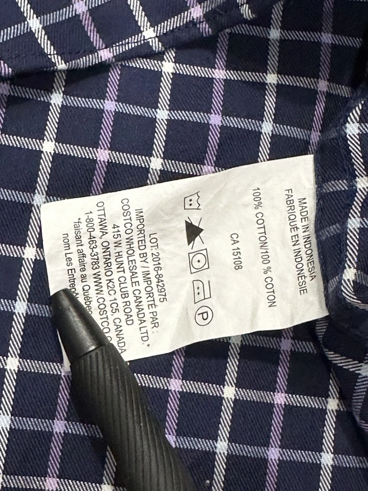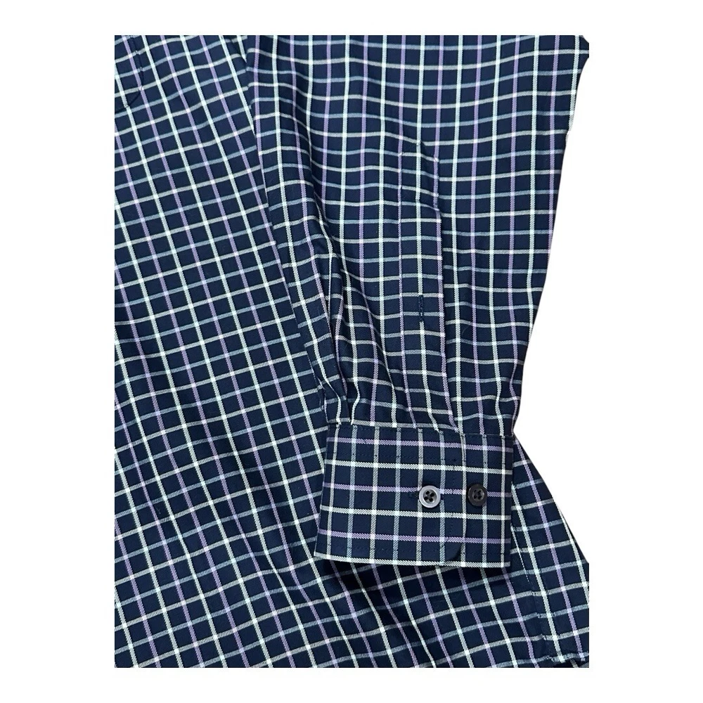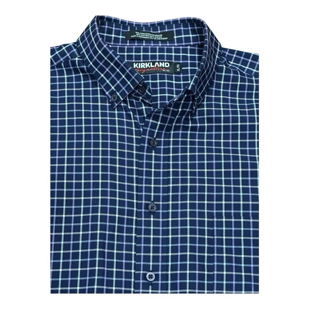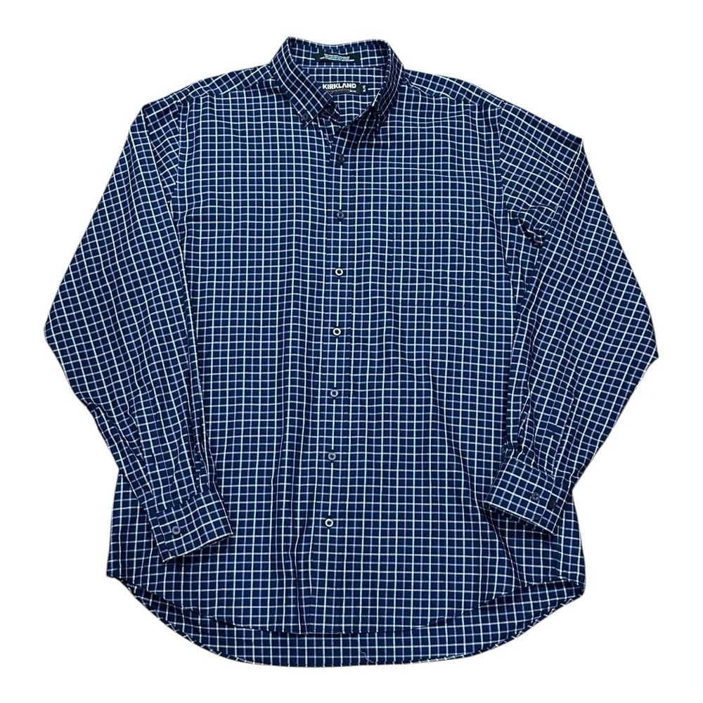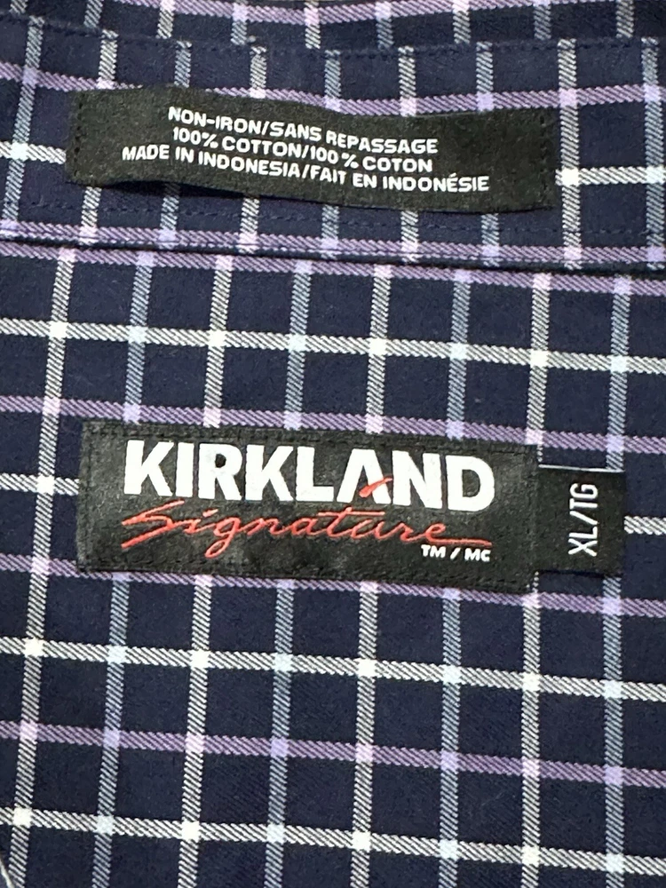 Kirkland Shirt Mens XL Blue Purple Check Button Down Long Sleeve Shirt Non Iron Condition as shown in the photos Please see photos for measurements Blue, purple, and white check Size XL 100% Cotton 2236