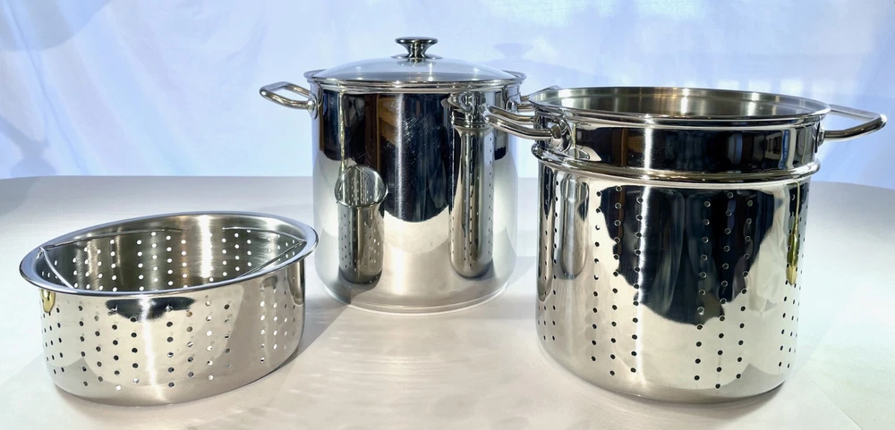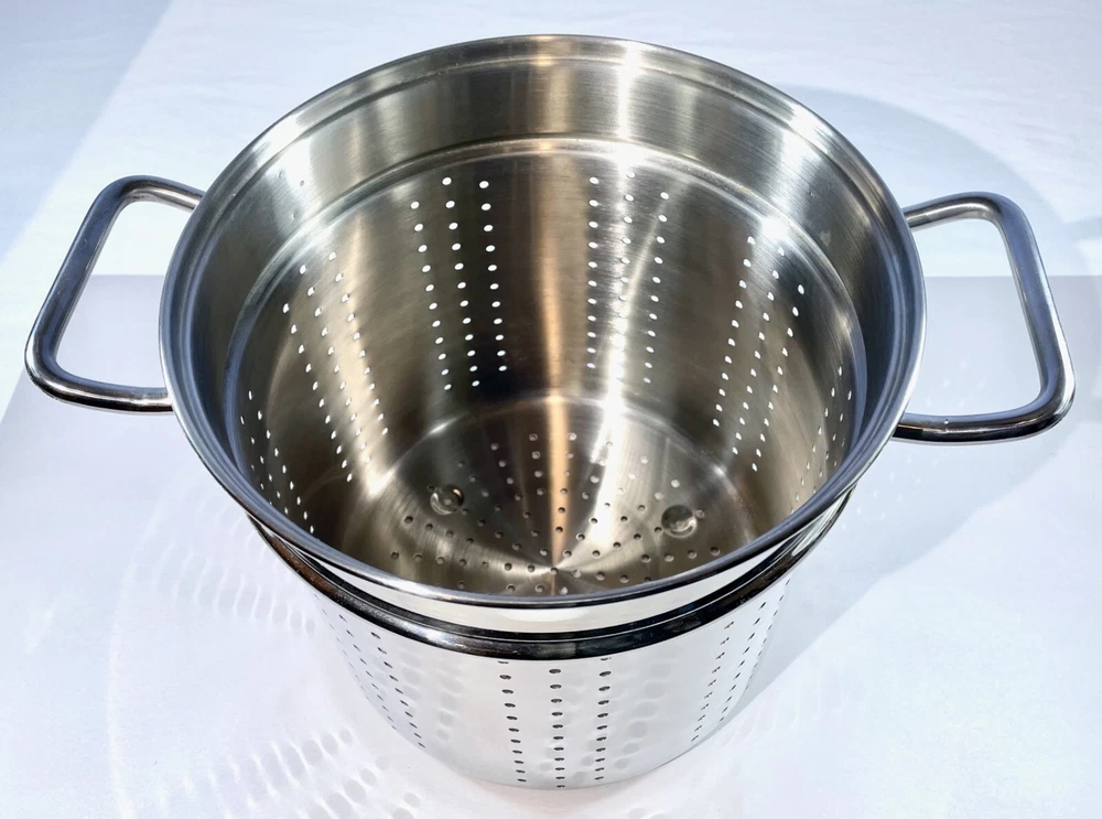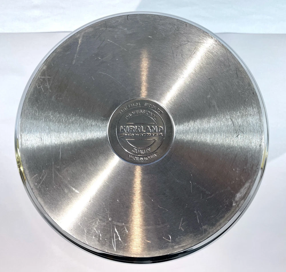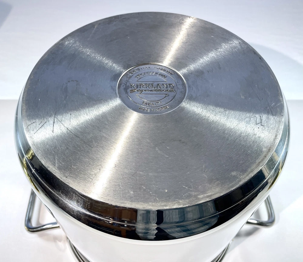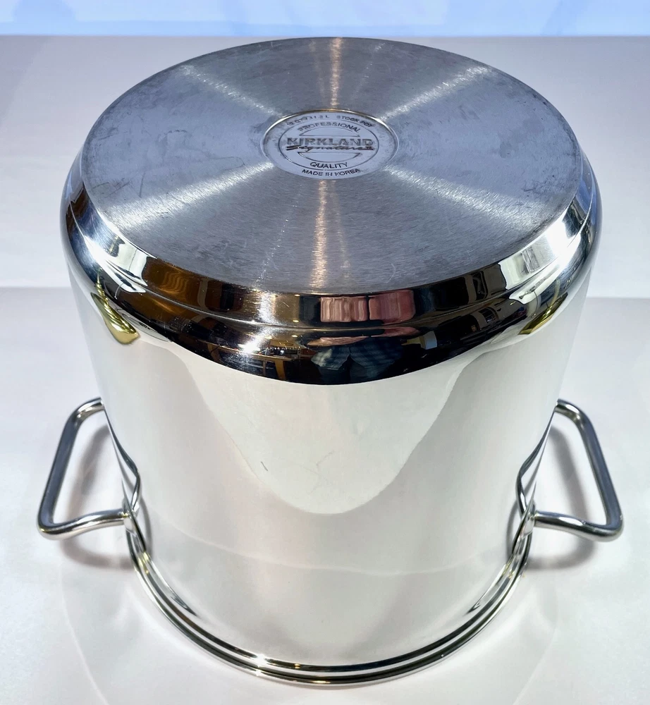 Kirkland Signature Professional 12 QT Stock Pot w/ 2 Steamers & Lid NICE & CLEAN From an Estate in the Pacific Northwest. Condition is excellent with some signs of use, no dents and bottom sits flat. Great, quality set that is ready to make a meal for an army! This Kirkland Signature Professional stock pot is the perfect addition to your kitchen. It comes with a 12 Qt capacity, making it suitable for cooking large amounts of food. The set includes a stock pot, lid, and two steamers, which adds versatility for different cooking needs. The pot is made of high-quality stainless steel and is suitable for use on gas or electric stoves. It is dishwasher safe, making it easy to clean. The silver color and sleek design make it a stylish addition to your cookware collection. This stock pot is a must-have for any cooking enthusiast. Perfect for large and small meals, canning and steaming! The item dimensions are 10 inches in length and depth, and 12 inches in height. The handles have a width of 14 inches. This unit is perfect for cooking all kinds of pastas, soups and stews and is a great addition to any kitchen. SELLER NOTES: Preowned in excellent condition. Some signs of use including scratches to the bottom stockpot surface. Nice and clean! See photos and use zoom. Our goals are to provide excellent service, represent items accurately, and ensure smooth transactions. Please review photos closely and use zoom before purchasing. Message us anytime and we'll get back ASAP. We pack and ship with an abundance of care. SHIPS FAST VIA INSURED USPS usually same business day and at least within one business day. Thanks for looking!