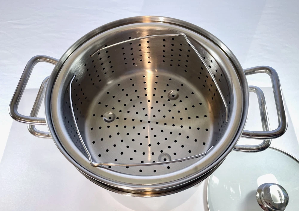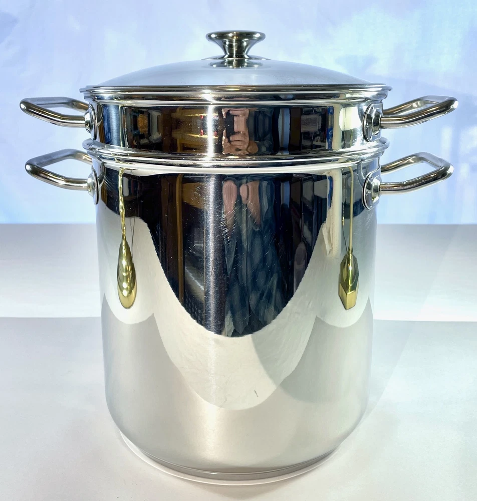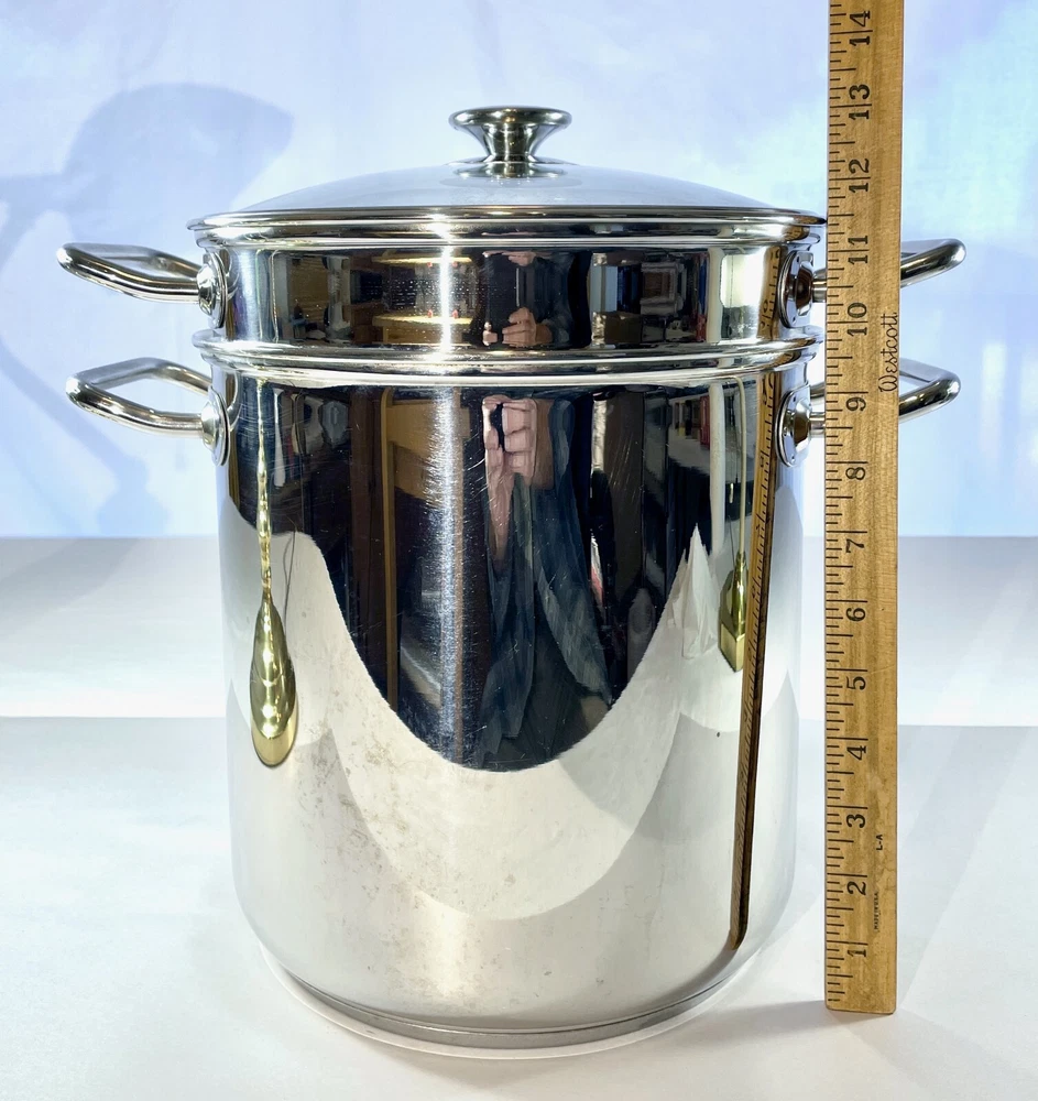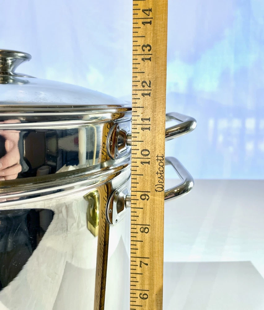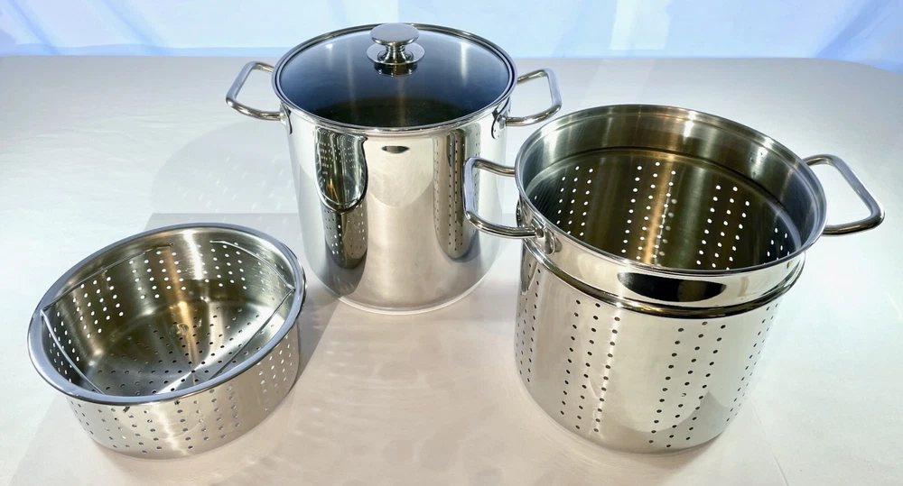 Kirkland Signature Professional 12 QT Stock Pot w/ 2 Steamers & Lid NICE & CLEAN From an Estate in the Pacific Northwest. Condition is excellent with some signs of use, no dents and bottom sits flat. Great, quality set that is ready to make a meal for an army! This Kirkland Signature Professional stock pot is the perfect addition to your kitchen. It comes with a 12 Qt capacity, making it suitable for cooking large amounts of food. The set includes a stock pot, lid, and two steamers, which adds versatility for different cooking needs. The pot is made of high-quality stainless steel and is suitable for use on gas or electric stoves. It is dishwasher safe, making it easy to clean. The silver color and sleek design make it a stylish addition to your cookware collection. This stock pot is a must-have for any cooking enthusiast. Perfect for large and small meals, canning and steaming! The item dimensions are 10 inches in length and depth, and 12 inches in height. The handles have a width of 14 inches. This unit is perfect for cooking all kinds of pastas, soups and stews and is a great addition to any kitchen. SELLER NOTES: Preowned in excellent condition. Some signs of use including scratches to the bottom stockpot surface. Nice and clean! See photos and use zoom. Our goals are to provide excellent service, represent items accurately, and ensure smooth transactions. Please review photos closely and use zoom before purchasing. Message us anytime and we'll get back ASAP. We pack and ship with an abundance of care. SHIPS FAST VIA INSURED USPS usually same business day and at least within one business day. Thanks for looking!