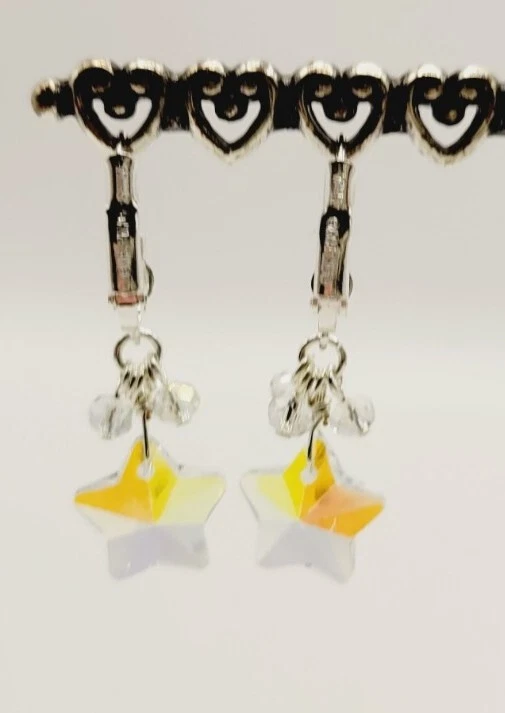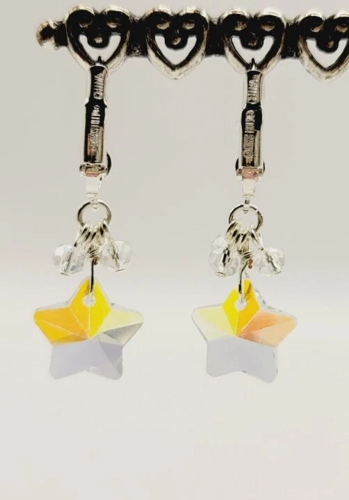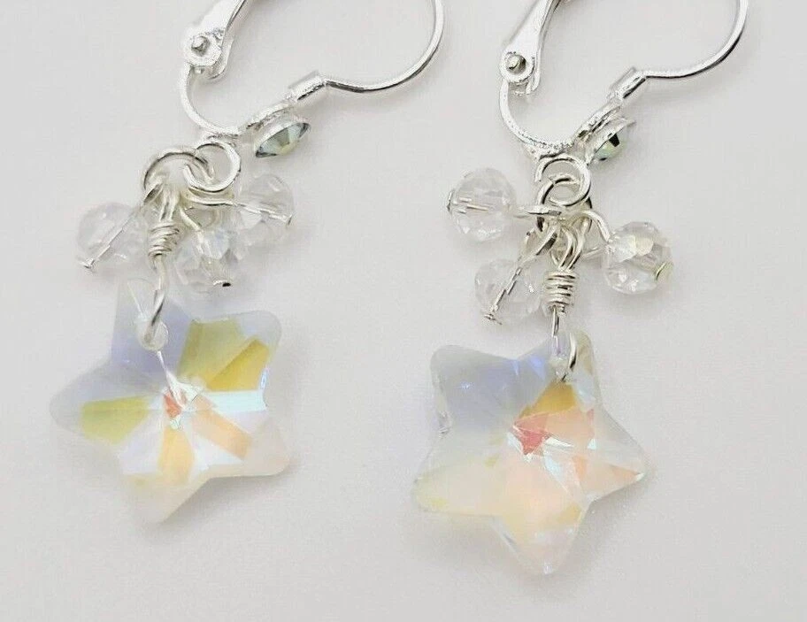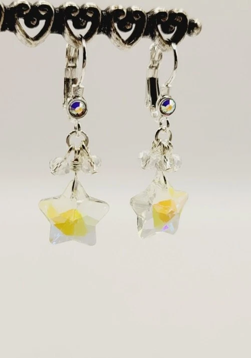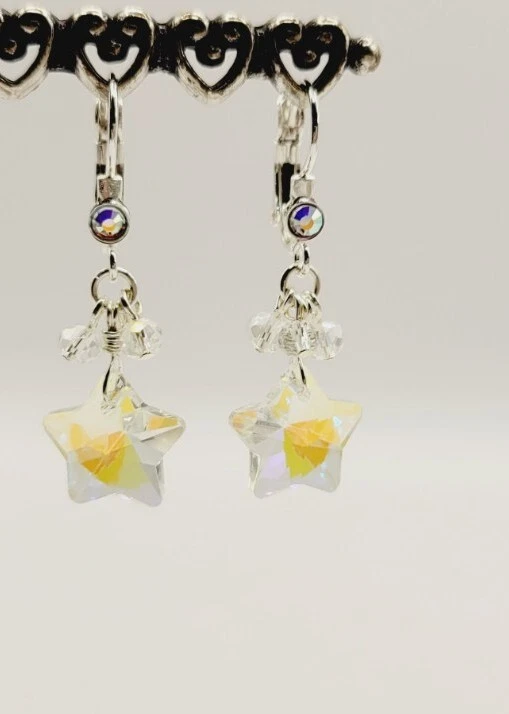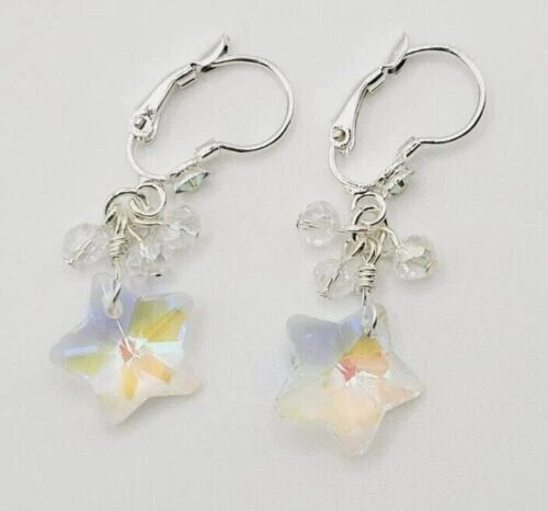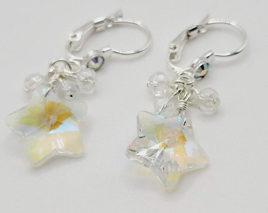 Kirks Folly STAR aurora borealis crystal lever back DANGLE earrings Silver tone