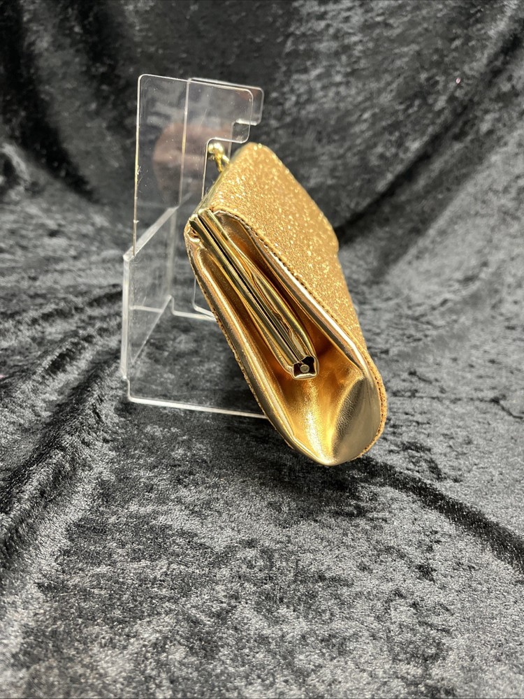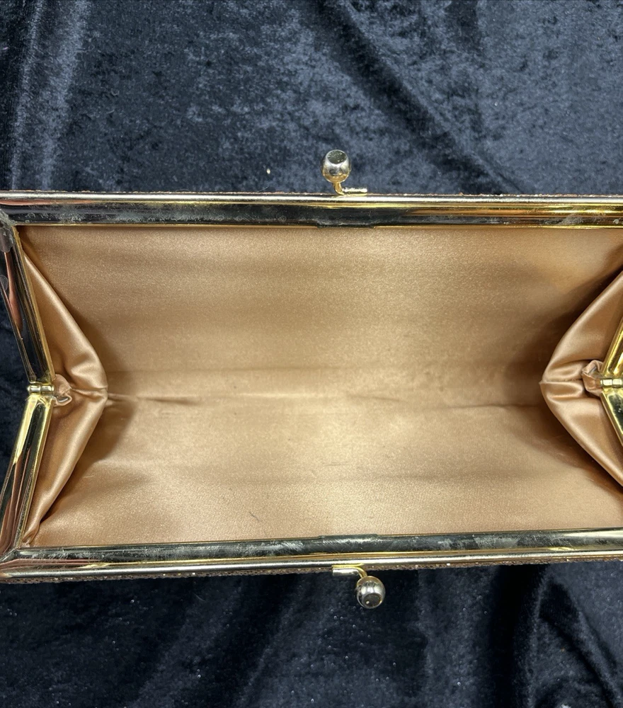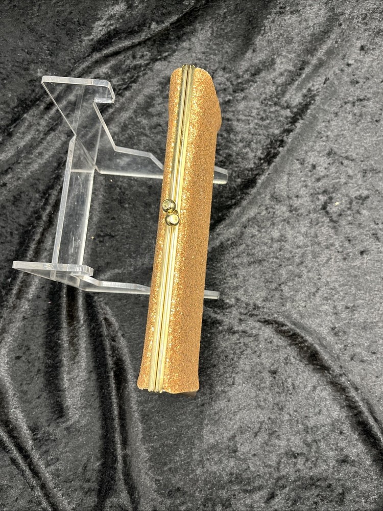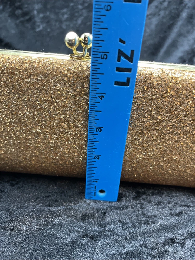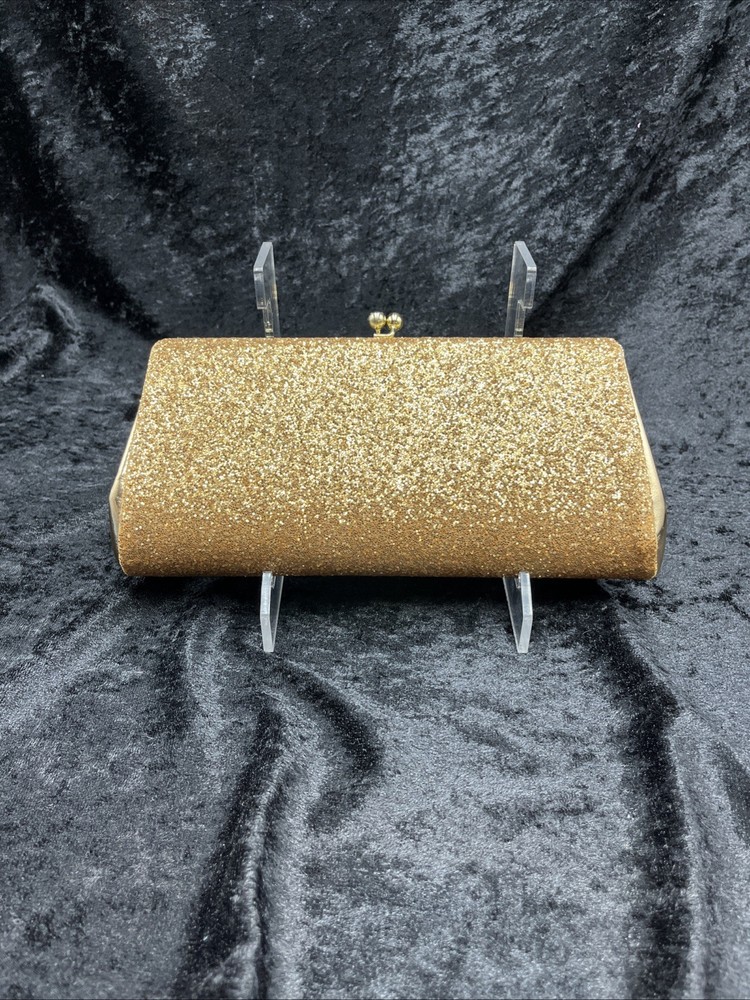 Kiss Lock MCM Vtg Clutch Bag Formal Glitter Purse Sparkle Bling Elegant This vintage clutch bag from the 1960s exudes elegance and sophistication with its kiss lock closure and metallic gold/champaign material. Perfect for formal occasions, the purse features a glittery sparkle design that adds a touch of glamour to any eveningwear ensemble. Made in the United States, this original piece is a timeless accessory that captures the essence of classic style and luxury.