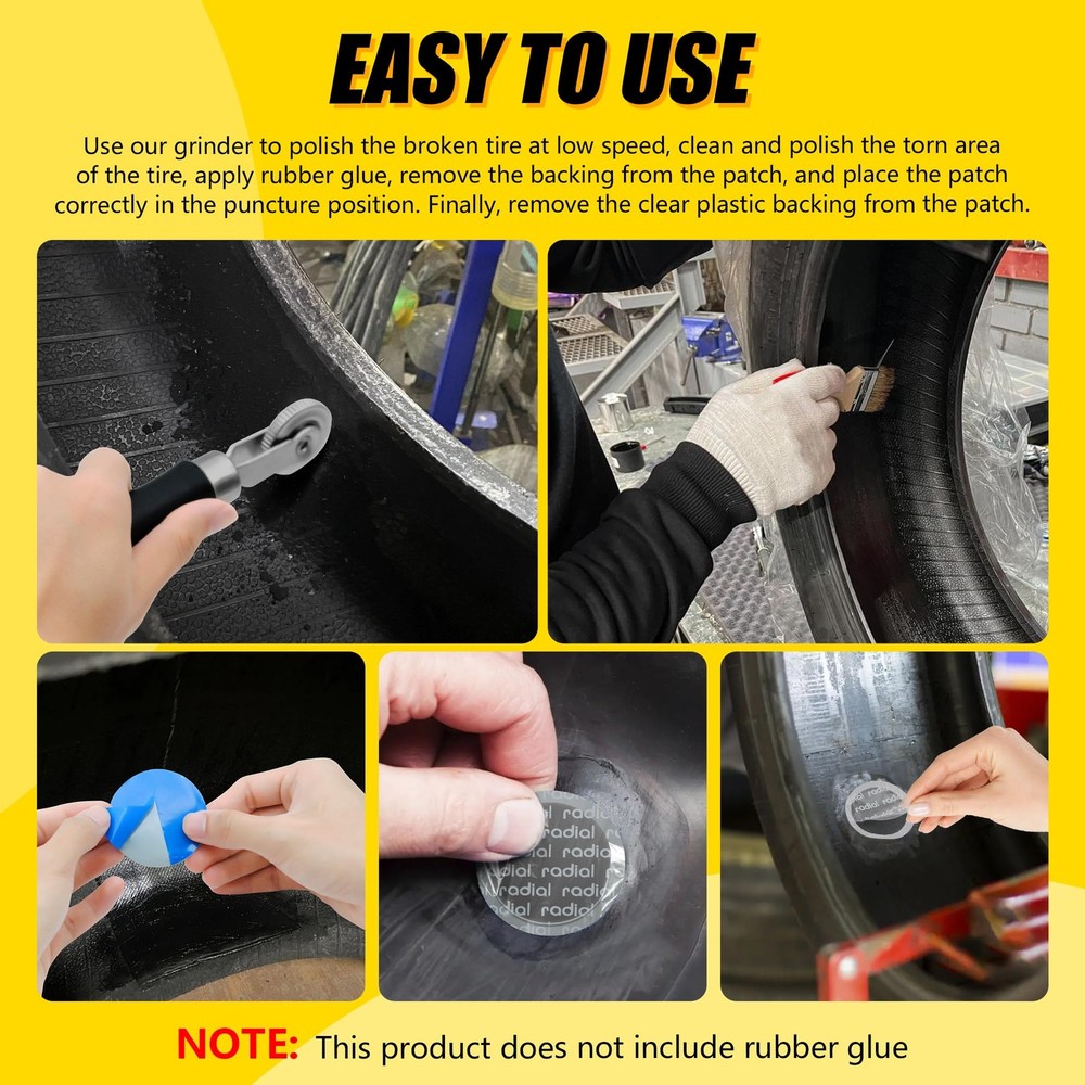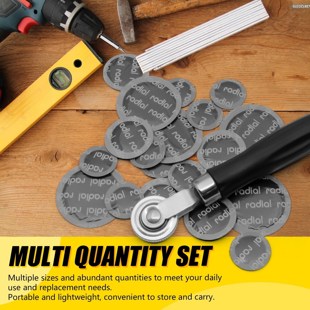 Kit de parches para reparación de neumáticos con rodillo para pinchazos Features: Material de caucho: Nuestro kit de parches para neumáticos está hecho de caucho engrosado con alta elasticidad y adherencia, lo que lo hace resistente y confiable para un uso prolongado. El parche de reparación de neumáticos no se desgasta fácilmente, adoptando un diseño de capa de lona que es plano y suave de usar. Alto rendimiento: El kit de parches para neumáticos de alta resistencia hace que la reparación de neumáticos sea más conveniente y rápida, proporcionando un sellado efectivo entre el parche y el neumático, restaurando el estado de funcionamiento del neumático y reduciendo la eliminación de neumáticos usados. Juego de múltiples cantidades: Kit de 91 parches para neumáticos para bicicletas, automóviles y motocicletas, incluye 1 rodillo de parches para neumáticos y 90 piezas en 3 tamaños: 30 piezas de 32 mm (1,26 pulgadas), 30 piezas de 42 mm (1,65 pulgadas) y otras 30 piezas de 58 mm (2,28 pulgadas). Ofrece múltiples tamaños y amplias cantidades para satisfacer sus necesidades diarias de uso y reemplazo. Portátil y ligero, fácil de guardar y transportar. Fácil de usar: Primero, use nuestra amoladora adicional para pulir la llanta rota a baja velocidad, limpie y pula la zona desgarrada, aplique pegamento de goma, retire el protector del parche y colóquelo correctamente en la posición del pinchazo. Luego, gire la herramienta para parchar llantas para expulsar el aire y, finalmente, retire el protector de plástico transparente del parche (Nota: El kit de reparación de pinchazos no incluye pegamento de goma). Herramientas para reparar llantas: El rodillo para parchar llantas está hecho de metal y plástico, y cuenta con dientes tipo engranaje que proporcionan una mayor presión de penetración y eliminan el aire atrapado, lo que mejora la adhesión y el sellado entre el parche y la llanta. Su mango es fácil de agarrar y proporciona un agarre estable y cómodo durante el uso. Amplia aplicación: El kit para parchar llantas es adecuado para reparar llantas en diversos vehículos, como bicicletas, motocicletas, tractores, remolques, camiones, bicicletas todoterreno, monociclos y otros automóviles. Cuando hay fugas, es la herramienta ideal para reparar neumáticos para proteger los neumáticos de su automóvil y permitirle conducir con seguridad. SHIPPING We are always working hard to ensure your package arrives as soon as possible. Please understand that some factors like weather, high postal traffic, and the performance of shipping companies are outside of our control. We offer free shipping to the lower 48 states and ship within 3 business days of payment, usually sooner. We do not accept P.O. Boxes. Please provide a physical address.