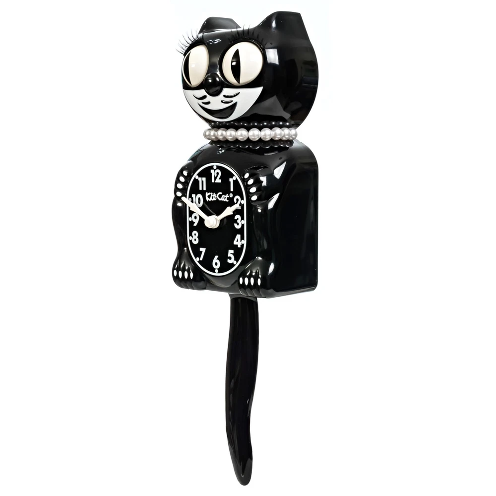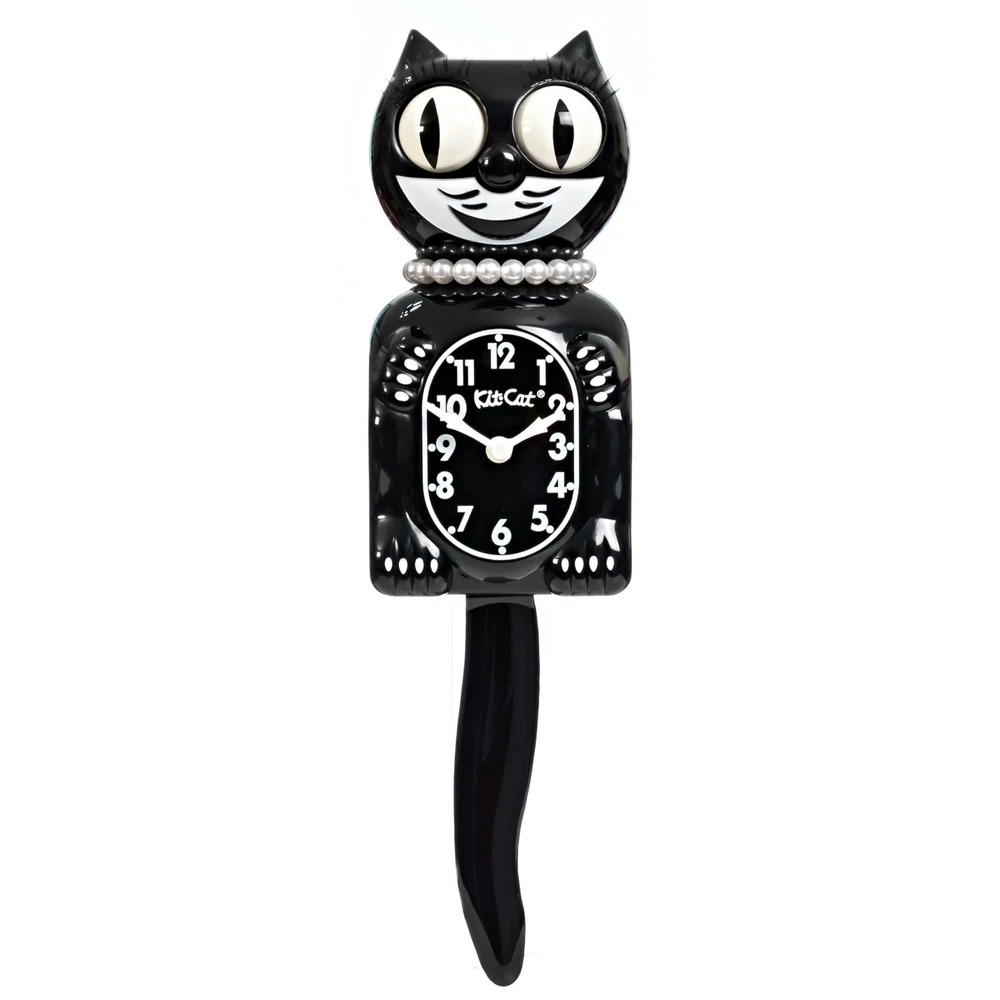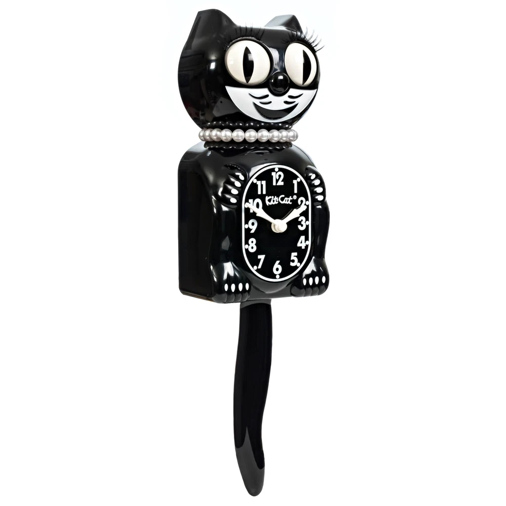 Classic Black Lady ICONIC TIMEPIECE - Brighten your home decor with the Classic Black Lady Kit-Cat Clock. a timeless cat clock with moving eyes and tail vintage that has delighted families for generations. with its smile. PERFECT SIZE FOR ANY ROOM - Standing 15.5 inches tall from ears to tail, this original-size Kit-Cat Clock is the ideal centerpiece for your wall, adding a touch of sparkle and character to any space, big or small. Perfect for enhancing your cat wall decor and retro house decor. LIMITED EDITION & MADE IN USA - Proudly crafted in the USA by the original manufacturer, this high-quality Classic Black Lady Kit-Cat Clock is built to last, making it a special collectible and a charming addition to your home. Ideal for those seeking battery operated wall clocks. EASY TO POWER & INSTALL - Simply insert 2 C batteries (not included) and hang this battery wall clock on your wall no complicated setup required. Enjoy the unique charm of a Kit Cat Clock with a modern twist, without the hassle. A STUNNING GIFT FOR ALL OCCASIONS - Whether for a housewarming, birthday, or holiday, the Limited Edition Classic Black Lady Kit-Cat Clock makes an unforgettable gift, combining its design with practical charm. Perfect for those looking for a unique clock.