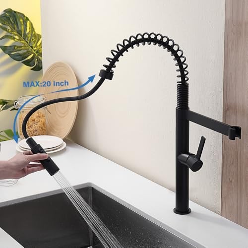 High Arc Matte Black Kitchen Faucet with Pull Down Sprayer and Water Filter