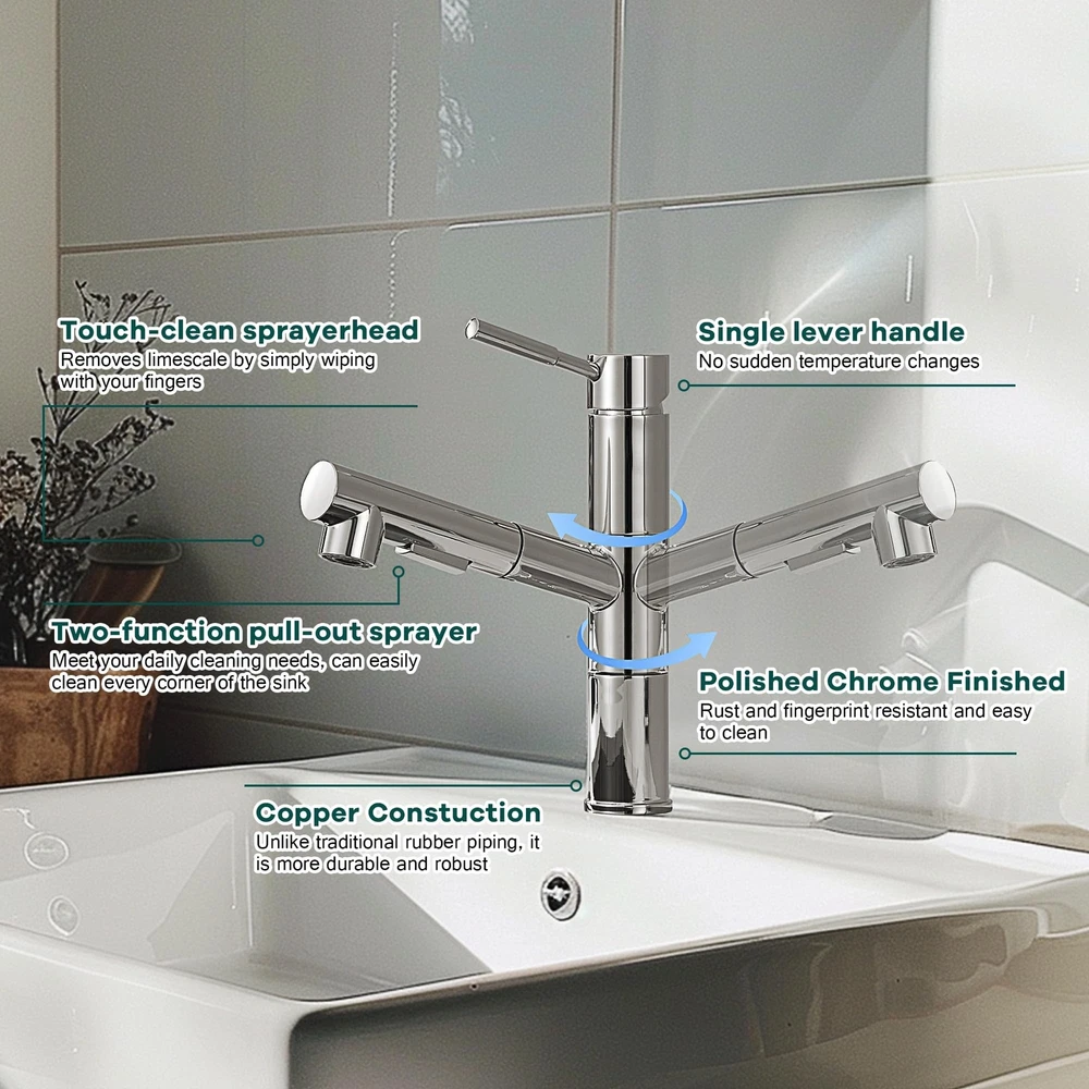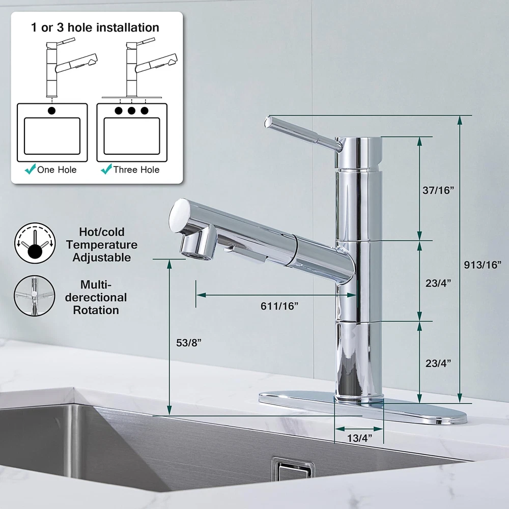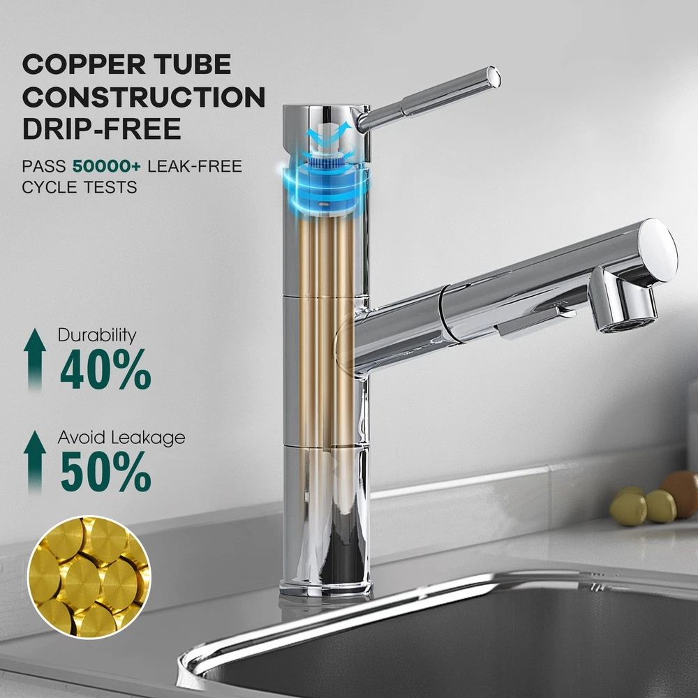 Kitchen Faucets, Chrome Kitchen Faucet with Pull Down Sprayer, Modern Stainless Steel Kitchen Sink Faucet Commercial RV Kitchen Faucet with Deck Plate 2 Modes Spray Spot Resist Product Details Color: Chrome Brand: FROPO MPN: YG-KF-058C UPC: Does not apply EAN: Does not apply Brand: FROPO Recommended Uses For Product: Bar, Bathroom, Kitchen, Outdoor Mounting Type: Deck Mount Finish Type: Polished Material: Stainless Steel Color: Chrome Number of Handles: 1 Hole Count: 1 Handle Type: handle Valve Type: Cartridge Valve Brand: FROPO Recommended Uses For Product: Bar, Bathroom, Kitchen, Outdoor Mounting Type: Deck Mount Finish Type: Polished Material: Stainless Steel Color: Chrome Number of Handles: 1 Hole Count: 1 Handle Type: handle Valve Type: Cartridge Valve Handle Material: Stainless Steel Spout Height: 5.75 Inches Spout Reach: 7 Inches Warranty Type: limited Handle Location: Center Spout Design: Low Arc Hose Length: 19 Inches Is Electric: No Manufacturer: FROPO Product Dimensions: 8"D x 1.75"W x 9"H Part Number: YG-KF-058C Item Weight: 4.44 pounds Item model number: KF-105CP Finish: Polished Batteries Included?: No Batteries Required?: No Date First Available: April 17, 2024 NO WATER LEAKAGE: The pull out kitchen faucet main body and internal piping are made of solid brass with tight joints that won't leak. The rv kitchen faucet can save 30% water. Two SPRAY MODES : The pull-out sprayer on the kitchen sink faucet with TWO spray setting modes (STREAM and SPRAY) for a steady, gentle, splash-free water flow, both of which can be used for different washing requirements. DURABLE FINISH: Our stainless steel kitchen faucet have a 5-layer surface coating that is rust and fingerprint resistant and easy to clean, simply scrub the pull down kitchen faucet with a damp cloth for a clear and neat look. AFTER SALE SERVICE: Feel free to contact us if you have any questions about our kitchen faucet with pull down sprayer, we will solve the problem perfect.
