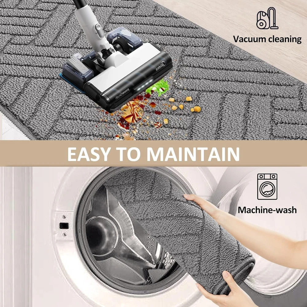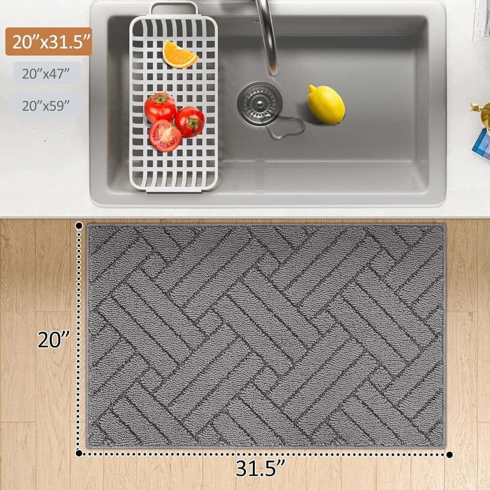 Kitchen Rugs Non Slip Mats for Floor 1'8" x 2'8" (Runner), Grey Product Details Brand: JEEDOVIA Size: 1'8" x 2'8" (Runner) Material: Polypropylene Weave Type: Braided Item Weight: 1.57 Pounds Pile Height: Low Pile Construction Type: Machine Made Back Material Type: Polypropylene Color: Grey Indoor/Outdoor Usage: Indoor Theme: Supernatural Is Stain Resistant: Yes Product Care Instructions: If the kitchen floor mat you receive has creases or raised edges due to transportation, please lay it flat for 1~2 days to remove the creases on the carpet before using it for the first time or wash and dry the kitchen mat., SHAKE OFF Pattern: Braided Shape: Runner Special Feature: Lightweight, Non Slip, Stain Resistant, Washable, Waterproof Room Type: Bathroom, Bedroom, Dining Room, Kitchen Product Dimensions: 31.5"L x 20"W Rug Form Type: Runner Style: Modern Number of Pieces: 1 Item Thickness: 0.41 Inches Item Weight: 1.57 pounds Brand: JEEDOVIA Size: 1'8" x 2'8" (Runner) Material: Polypropylene Weave Type: Braided Item Weight: 1.57 Pounds UPDATED SUITABLE SIZE for YOU:The JEEDOVIA kitchen rugs are now available in sizes 20"x31.5", 20"x47", and 20"x59". Our kitchen runner rugs are Upgraded width to 20 inches now it can provide an extra large area for standing in kitchen,entrance, or any other high-traffic space. keeping your home cleaner and more beautiful! ( please confirm the size before ordering!) 100% NON SLIP RUG:The kitchen mats for the floor are designed with a non-skid TPR rubber backing that won't scuff floors and helps protect you from slippage. HIGH QUALITY KITCHEN MATS:This premium kitchen rug is made of high-quality polypropylene fabric, strong, odorless, and eco-friendly. As a floor rug used in high-traffic cooking areas, the large size kitchen carpet is a great way to keep your kitchen clean and tidy. EASY TO CLEAN& MAINTAIN:When your kitchen sink rug gets dirty, simply shake it off outdoors,sweep or use a hand-held vacuum,For a deeper clean,The washable kitchen rugs is machine washable and can be dried. MULTI-PUROSE:Widely used for home decor, in front of the sink, indoor front welcome mat, living room, back.