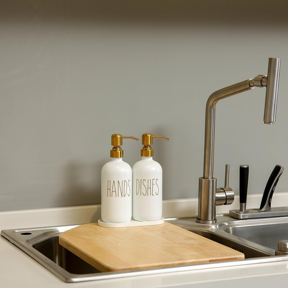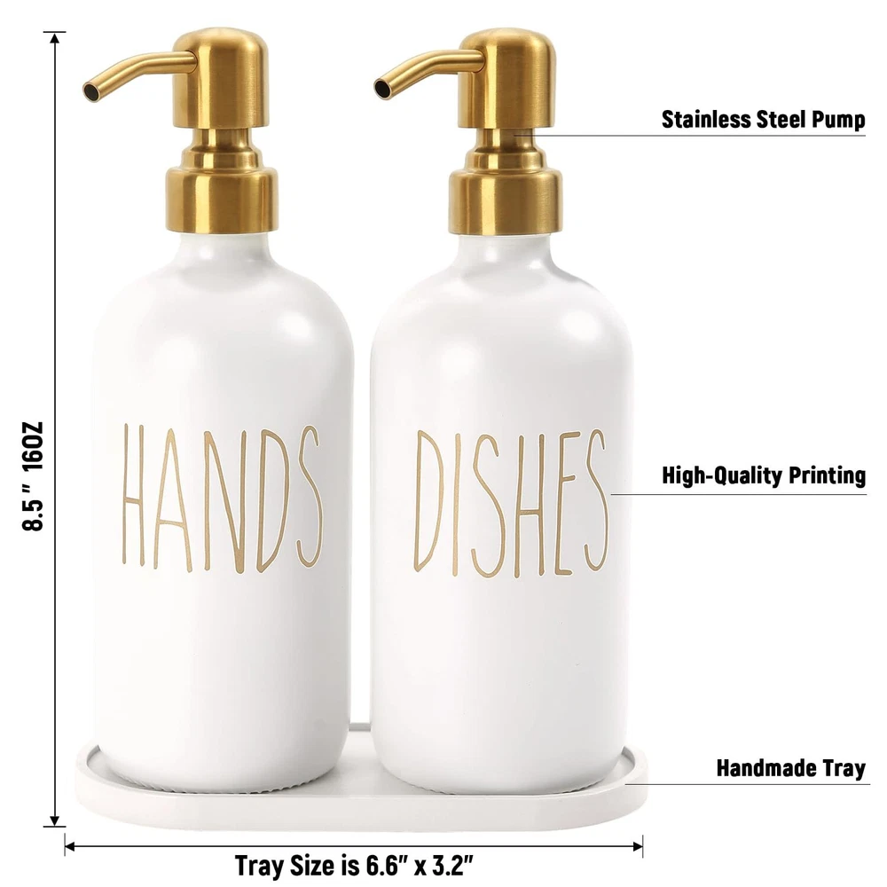 MOMEEMO Glass Soap Dispenser Set with Stainless Steel Pump, Contains Hand and Dish Soap Dispenser, Suitable for Kitchen Counter Decor (White) [Hands and Dishes] With the hands and dishes label, you’ll never mix up or get asked “Which Soap is Which?”. The label is not only good for distinction soap dispensers but also looks elegant. [Versatile and Reusable] Pump bottle dispenser can be used anywhere in the kitchen. From the glass soap dispenser with pump to the cute soap dispenser tray will not rust, can be refilled, and is reliable. [Exceptional Quality] Soap dispenser for kitchen is made of quality glass, matched with a stainless steel soap dispenser pump and a rustic tray. This is a farmhouse kitchen decor for counter that can bring your kitchen sink area to the next level. [Farmhouse and Minimalist Style] This white soap dispenser is both decorative and practical. Whether you're looking for any rustic kitchen decor or kitchen accessories, this hand and dish soap dispenser set adds that special touch to everyone's kitchen. [Ideal Gift] The kitchen dish soap dispenser can serve as a wonderful gift for your family, relatives, and friends. Dish soap bottle set perfect fit for their kitchen sink. SHIPPING Domestic Buyers - We have confidence in our products, but if you are not fully satisfied please contact us within 30 days of purchase and you will get full refund. - We ship within 3 business days of payment, usually sooner - We offer FREE shipping on all orders! - We only ship to the lower 48 states, no APO/FPO addresses or PO Boxes allowed International buyers – please note: Import duties, taxes, and charges aren't included in the item price or postage cost. These charges are the buyer's responsibility. - Please check with your country's customs office to determine what these additional costs will be prior to bidding or buying. * Order Cancellation Policy ** You can return a product for up to 30 days from the date you purchased it. 1. The seller reserves the right to cancel the special case only due to eBay cancellation fee. 2. The decision of seller is the final. 3. The seller will respond to the cancellation request within 2 business days. Please wait for the result of cancellation. 4. In case the cancellation is not completed by some reasons, the buyer can follow the options below to get the refund. 4.1 The buyer can reject the item when it arrives. 4.2 The buyer can send the item back to the seller within 30 days If the buyer receives item (USA Shipment ONLY). The seller will provide the FREE return label to the buyer when the buyer opens " Return Item" case on eBay by using the reason as "Change my mind" ONLY. 5. When buyer has placed the order. The order will be processed and completed by automatic warehouse system within 5 minutes. In case that buyer sends the cancellation request after 5 minutes of placing the order, the request will be rejected. **Sending direct message to cancel the order is not allowed for every case.* Return Policy For the return case - If buyer would like to return the items for refund or replacement, please CONTACT SELLER to receive the free return label from seller. The refund or replacement will be processed with the tracking number of return label which is provided by seller only. The other ways of return which are not approved by seller will not be processed for the refund or replacement.