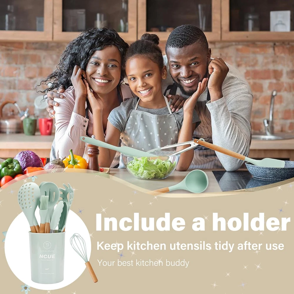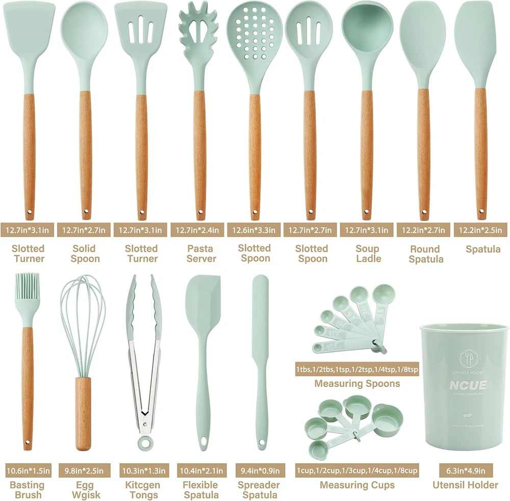 Store New Arrivals Add to Favorite View Feedback Contact Kitchen Utensils Set, 26 Pcs BPA Free Non-Stick Silicone Cooking Kitchen Utensils Set with Holder, Wooden Handle Heat Resistance Silicone Spatula Spoon Kitchen Gadgets Utensils Set (Light Green) Description Item model number NC26P Color Light Green Material Silicone Is Dishwasher Safe Yes Item Weight 3.11 pounds Handle Material Wood Recommended Uses For Product Serving, Flipping, Spreading Shape Rectangular, Trapezoid, Round Size small Product Dimensions 12.67"L x 4.5"W Material Type Free BPA Free Food Grade Silicone: This kitchen cookware set is made of food grade silicone and is BPA free. They will not react with food or drinks and will not produce any fumes. They will not bend or break like other cheap silicone kitchen utensils, so you and your family can enjoy the process of preparing food with confidence Heat and Scratch Resistant: All-around silicone added softness has a super heat resistance of up to 446°F/230°, so you don't have to worry about them melting if you accidentally leave them in the pan for a while. The silicone tip protects your pans and keeps the surface of your cookware from getting scratched or dented. Extend the life of all kitchen pans Easy to Clean And Quality Wood Handles: This set of quality kitchen silicone utensils is easy to clean, just wipe in warm water. The high quality wooden handle will not bend or rust and completely reduce heat transfer during cooking to avoid burning your hands. Practical hanging hole design allows for easy storage using hooks or wall hangings Complete Cooking Set: 26 silicone cooking utensils set including flexible spatulas, soup spoons, serving spoons, pasta servers, spatula turners, tongs, measuring cups and spoons and more. Meet your various kitchen needs, you don't need to spend a lot of money to buy each utensil individually. If you have any questions about our cutlery sets, please feel free to contact our customer service and we will be happy to help you Fine Gift: 26 different shapes of unique function cookware will be a good helper in your kitchen, it can be given as a gift to anyone who likes to cook, it is an ideal gift for friends and family at Christmas, Thanksgiving, wedding and housewarming party Product Description They will satisfy all your needs for cooking, would be your great companion in the kitchen. Each of them has its unique use. And the simple and modern design fits perfectly in any kitchen, easily matching the style of any other item or appliance. 100% PREMIUM BPA FREE NON-STICK FOOD GRADE SILICONE Does not react with food or drinks, or produce any harmful fumes. Soft silicone won't scratch your expensive pans. ABS Plastic Filter utensils Holder with small drainage holes in the bottom ensure no water stay. High temperature resistance up to 446°F/230°C. The soft silicone won't scratch non-stick pans or your larger pans. Meet your various cooking needs 26-Piece Kitchen Utensil Set With holder for neaty storage and drain easily ABOUT US We offer the best prices around on high quality products. Our E-store includes media such as books, movies, music and games while offering electronics, toys, sporting apparel, clothing, tools, general home, garden items and more. SHIPPING We are always working hard to ensure your package arrives as soon as possible. Please understand that some factors like weather, high postal traffic, and the performance of shipping companies are outside of our control. We offer free shipping to the lower 48 states and ship within 2 business days of payment, usually sooner. We do not accept P.O. Boxes. Please provide a physical address. For shipping outside of the continental USA, we only use eBay's Global Shipping Program.The item is shipped to KY and then sent to the rest of the world. International customers are responsible for all duties and taxes. Continue to check out in order to calculate costs for shipping the item to your country. Messages regarding eBay's Global Shipping Program MUST be directed at eBay EXCLUSIVELY. RETURNS We offer a 30-Day Return Policy on items which you are not completely satisfied with. You have the option for a full-refund or an exchange of the item. No returns are available on items shipped outside of the USA. PAYMENT We accept PayPal. CONTACT US This page content is yet to come Please ad us to your favorite seller and visit again later Thank You CUSTOMER SATISFACTION We try our very best to make sure every customer is completely satisfied. If there's a problem, message us! We're happy to help. WE ACCEPT Copyright © 2021 AutoDS. | All Rights Reserved