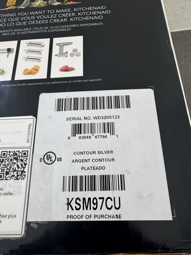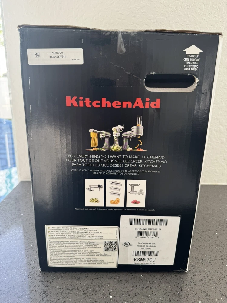Power Source:ElectricBrand:KitchenAidgtin13:883049677941Number of Speeds:10Number of Settings/Programs:10Power:300 WType:Standalone MixerUPC:883049677941Color:SilverComponents Included:StandCapacity:4.5 qtNumber of Items:5Model:883049677941MPN:KSM97CU