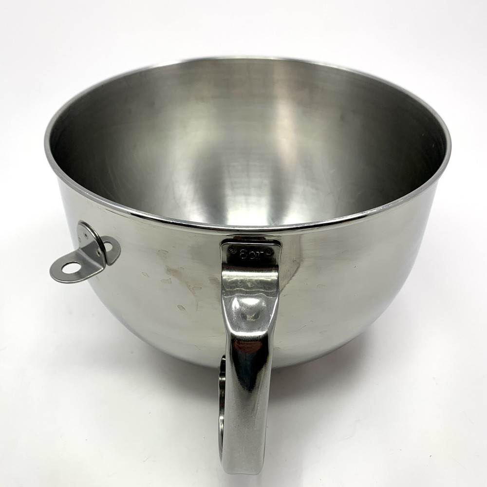 KitchenAid 6 Qt Bowl for Lift Stand Mixer 6 Quart Stainless Steel Replacement Used condition, scratches and wear inside and out. Please see photos for details. Note: only for 6 qt bowl-lift style Kitchenaid mixers, will NOT fit a tilt-head mixer. Please choose economy or priority shipping in the options. Feel free to contact me with any questions, I'm happy to help.